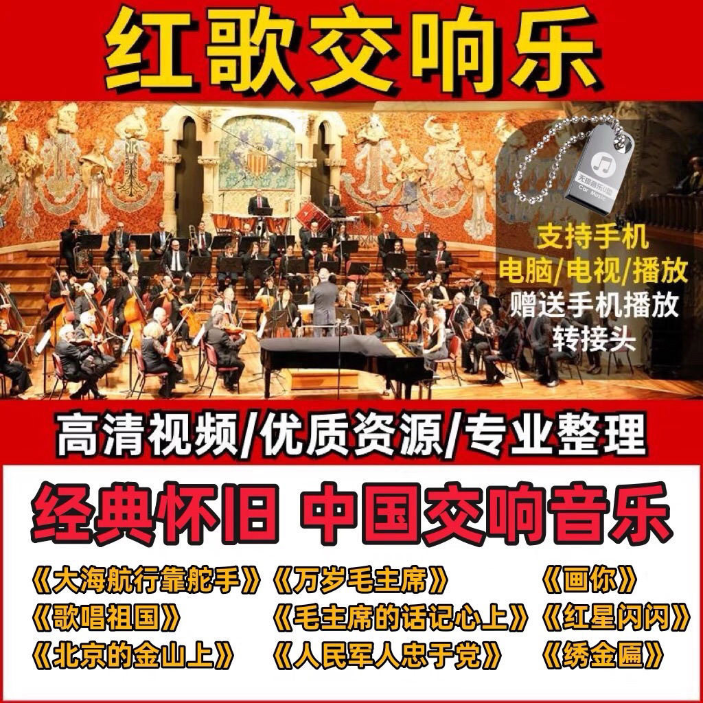 📚 老年人爱听的中国红歌交响乐曲老民歌联唱纯轻音乐车载音乐优U盘