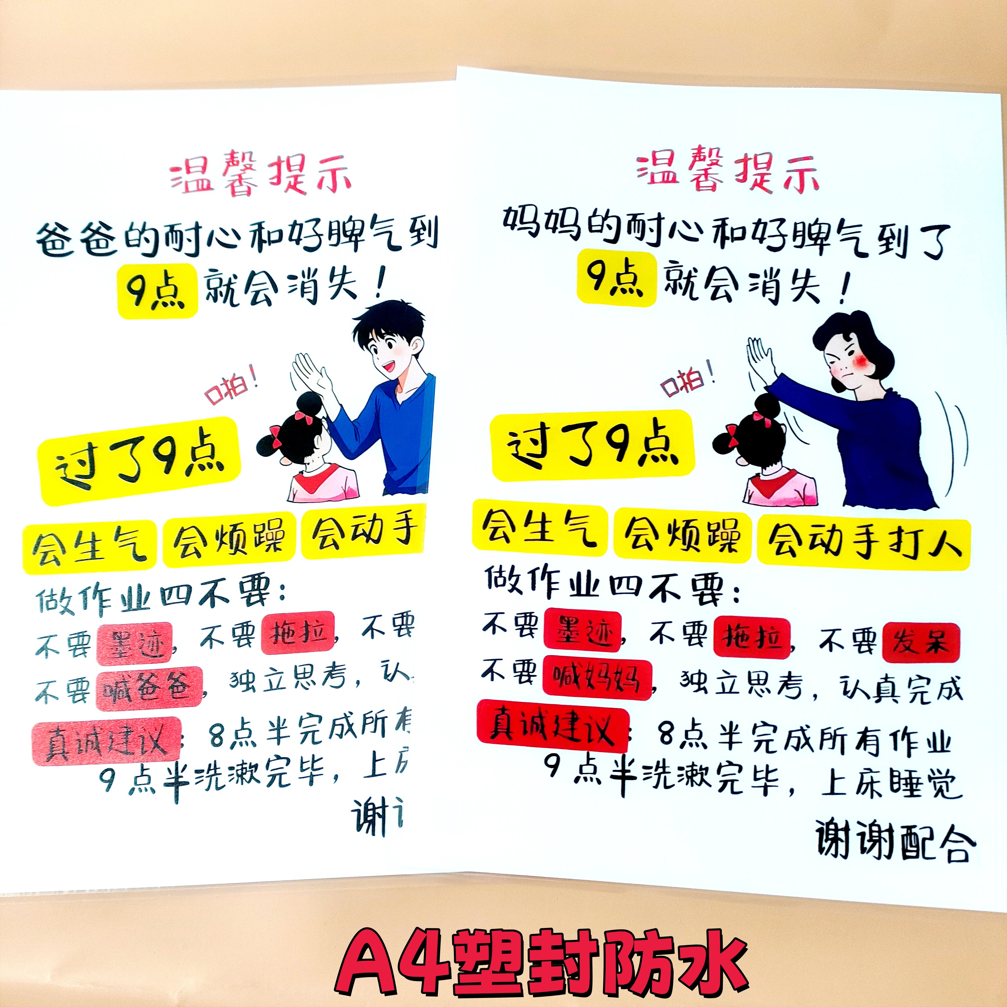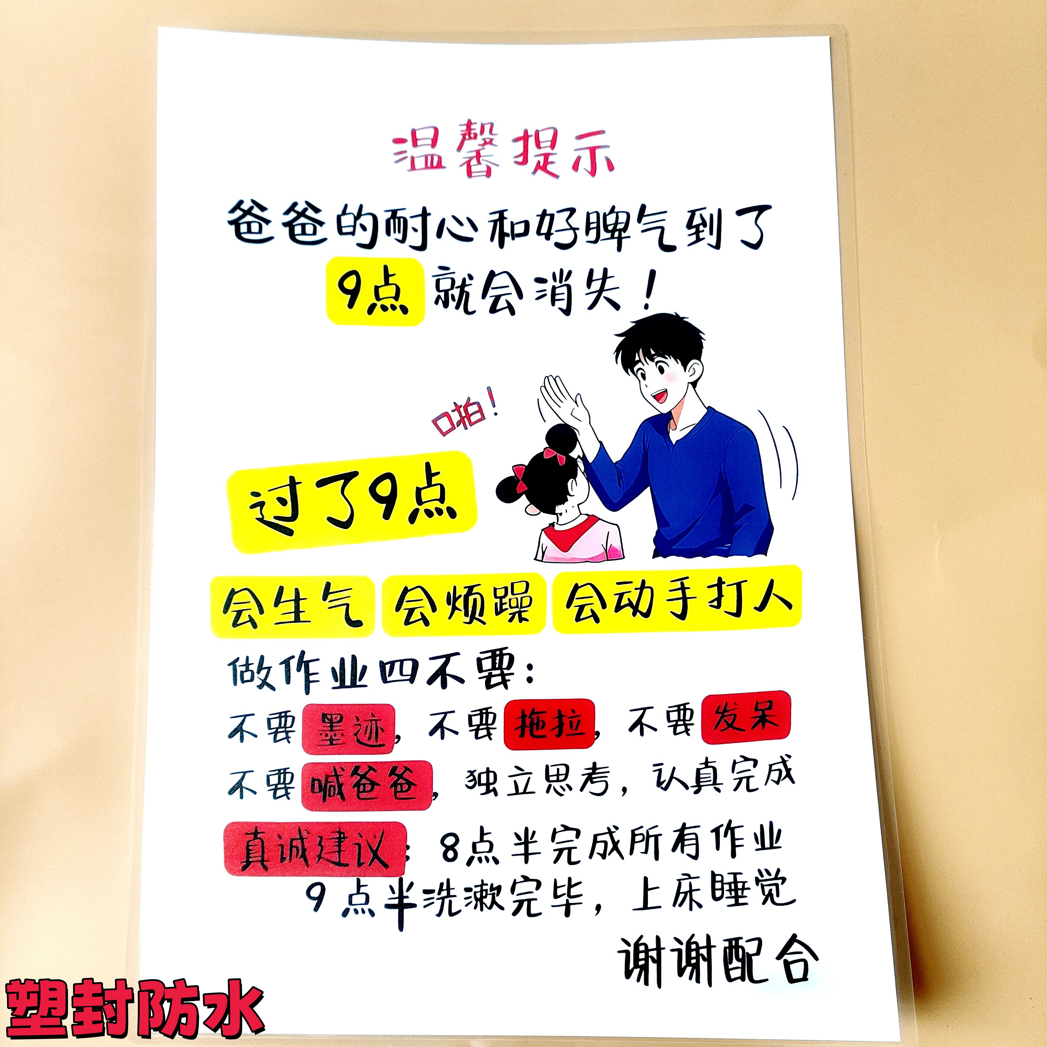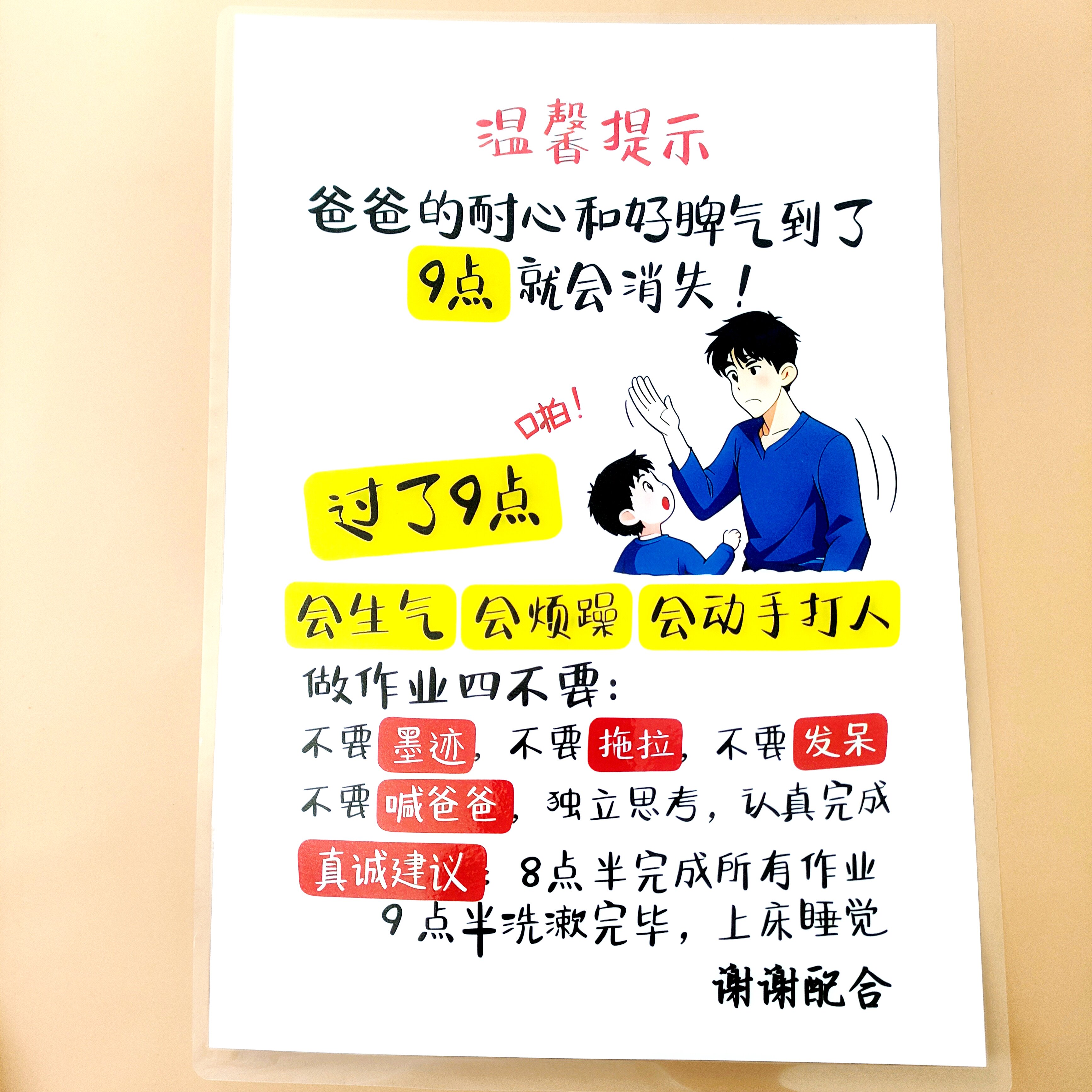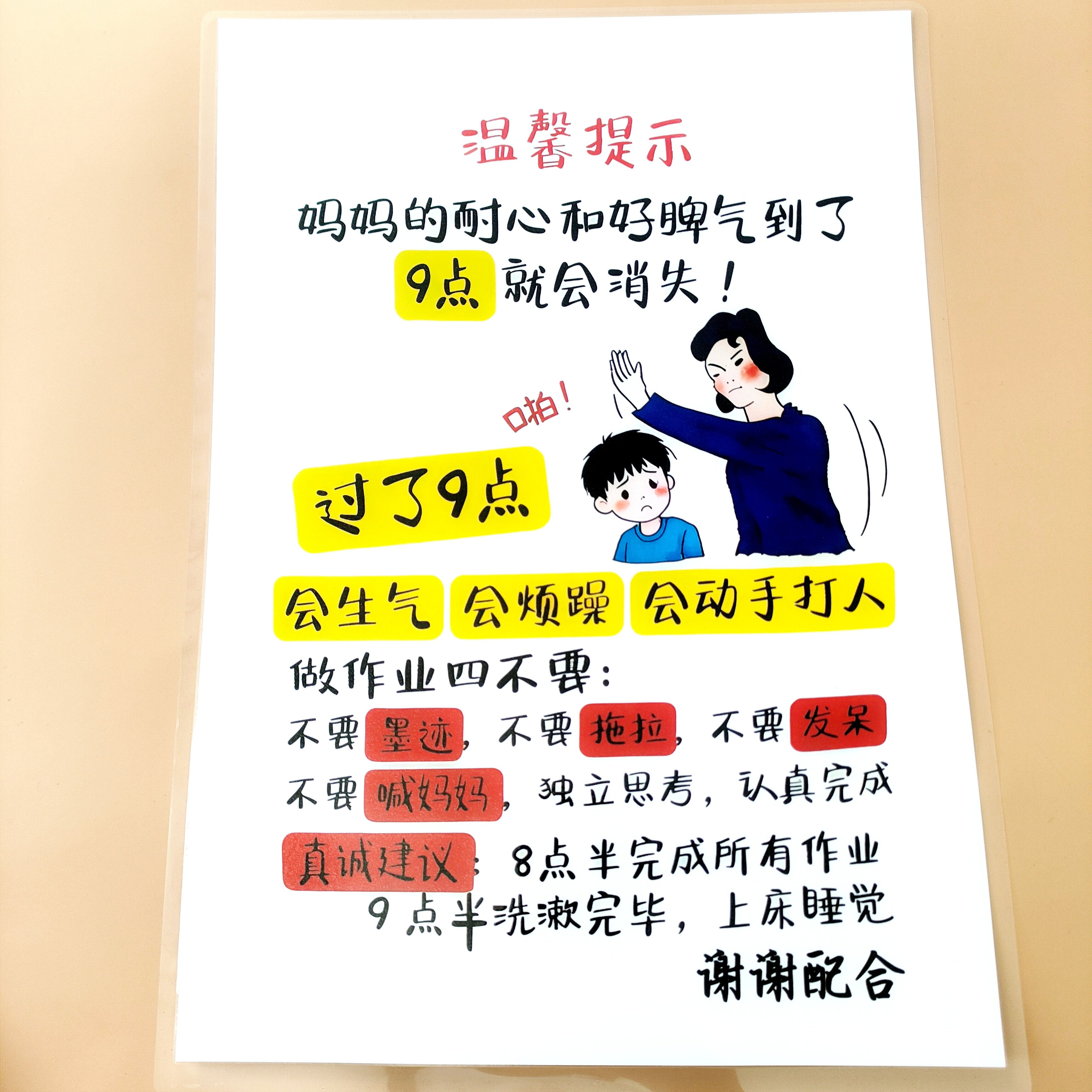 📚 妈妈爸爸的耐心和好脾气到了九点就会消失家规警示卡小孩自律A4卡