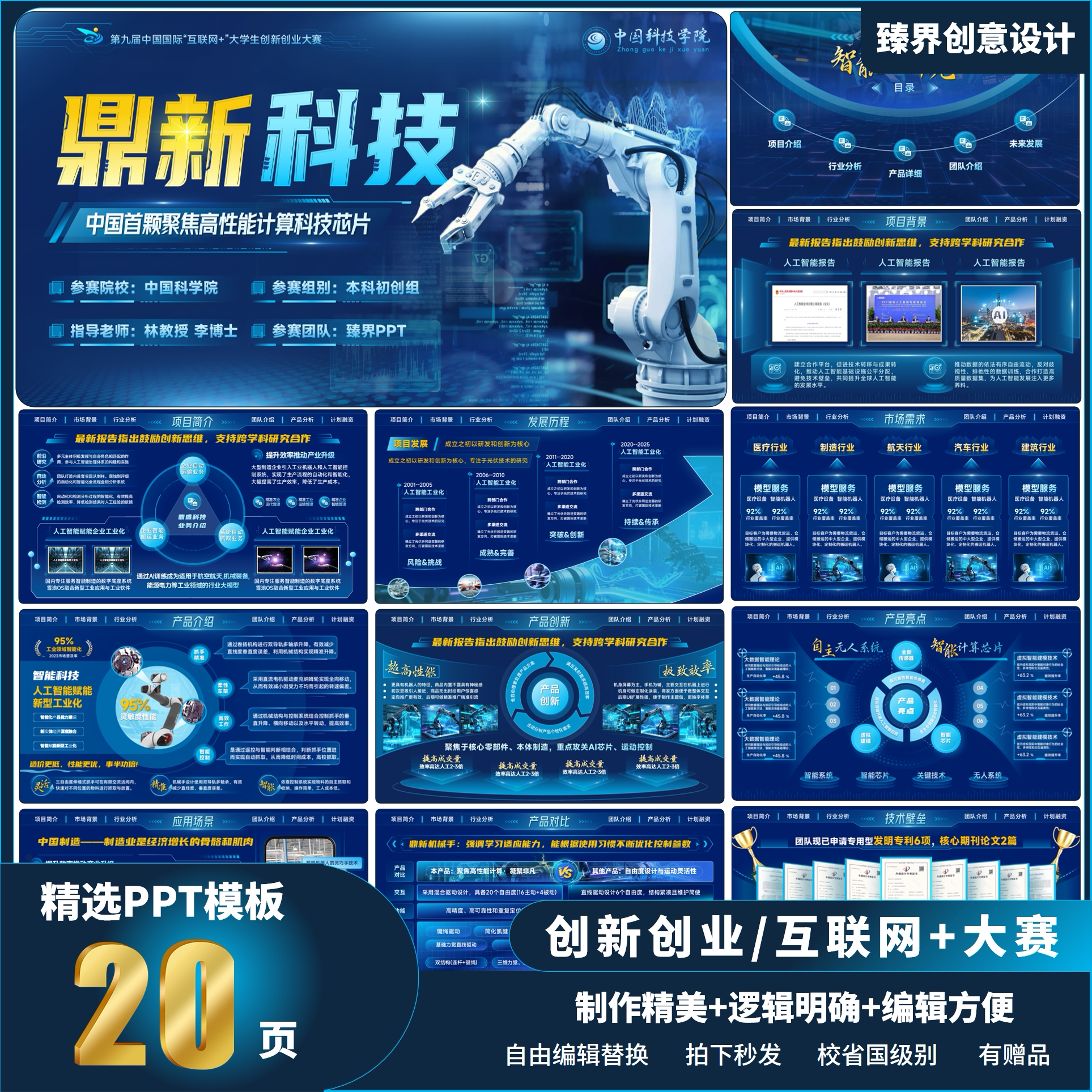 📚 创新创业大赛PPT模板大学生互联网+挑战杯PPT科技感可编辑高级感