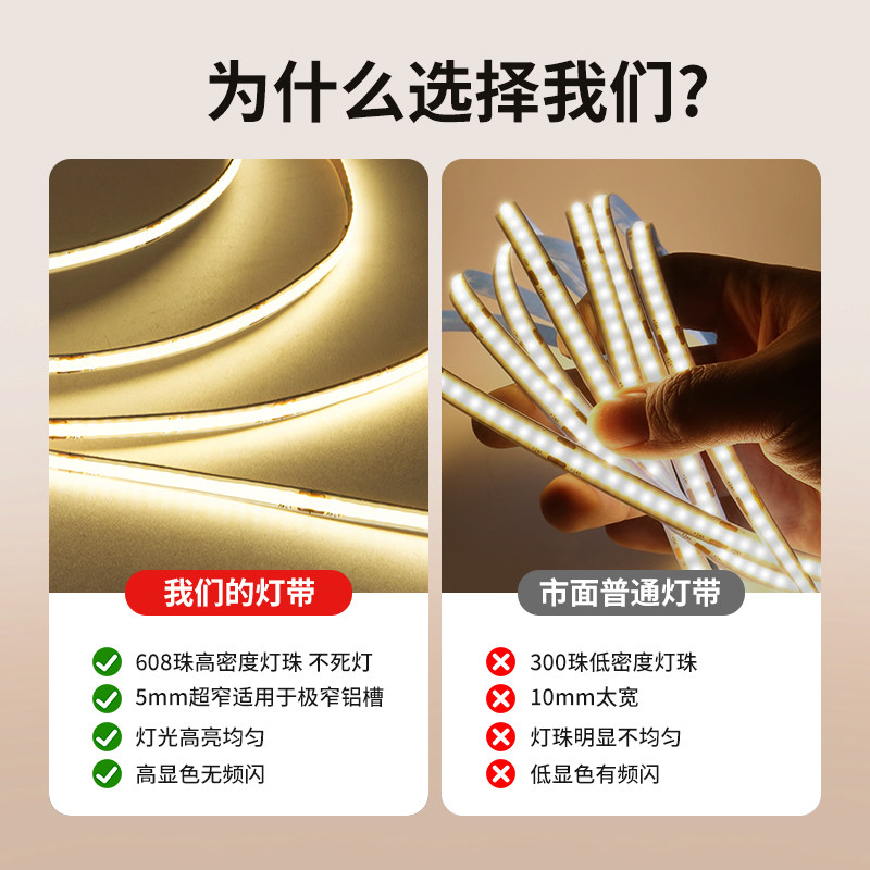 📚 智能超高亮COB灯带24V超窄5MM8MM线型形感应灯条吊顶踢脚线铝槽