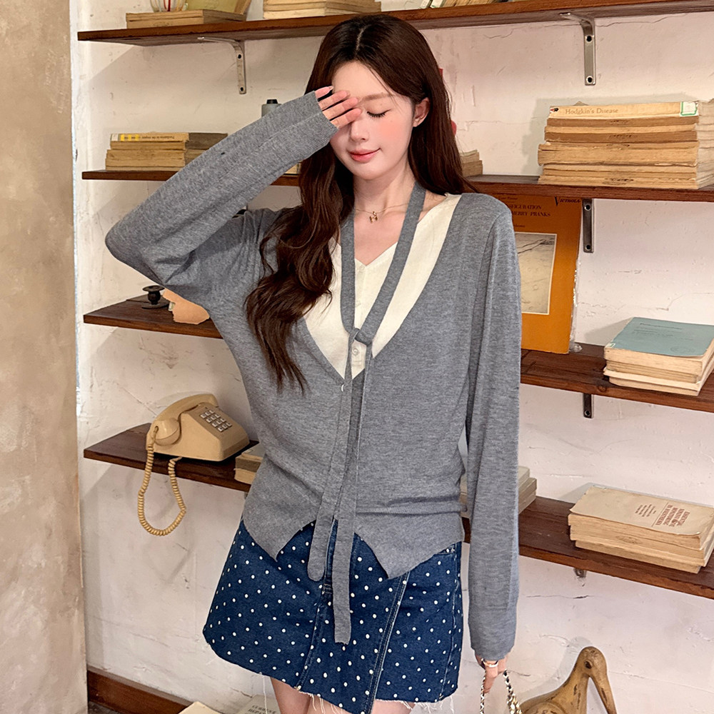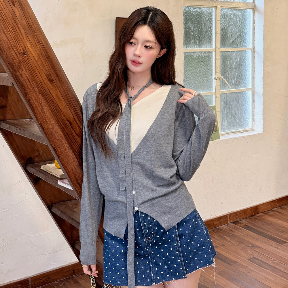 📚 Ciobbur针织衫女休闲百搭假两件V领排扣上衣2025秋季新款官方授权