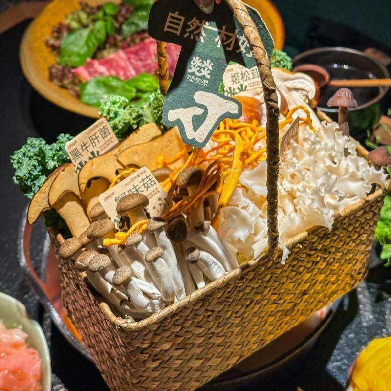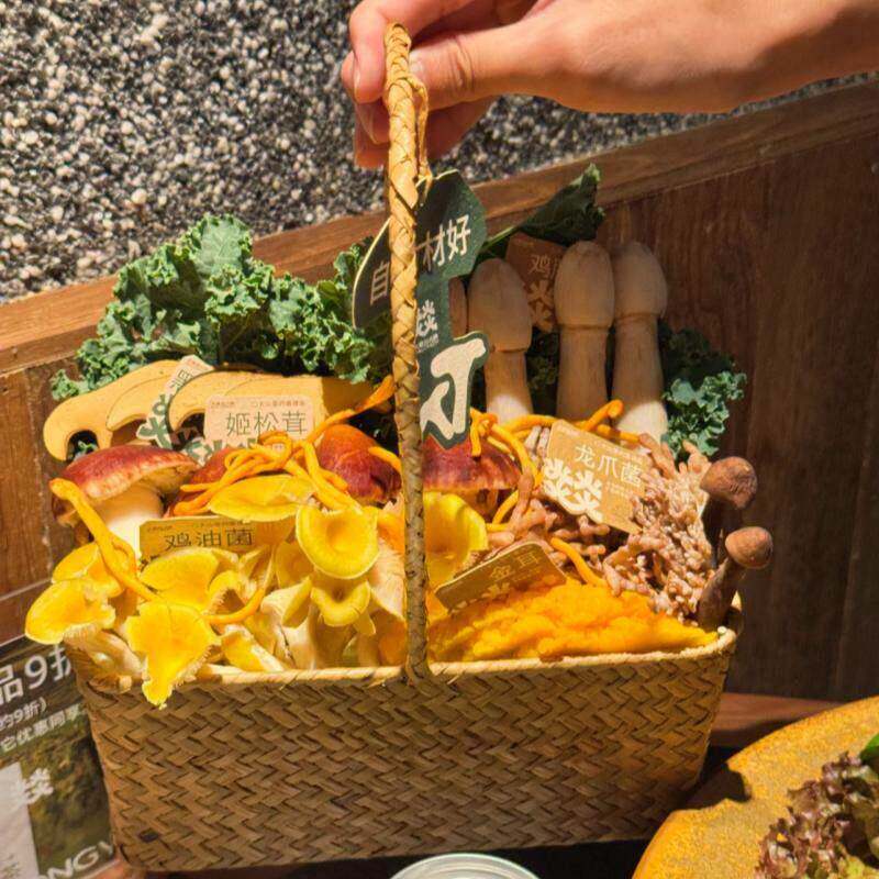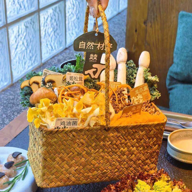 📚 山缓缓三出山同款菌菇拼盘编织篮贵州翘脚牛肉云南菌菇火锅店餐具