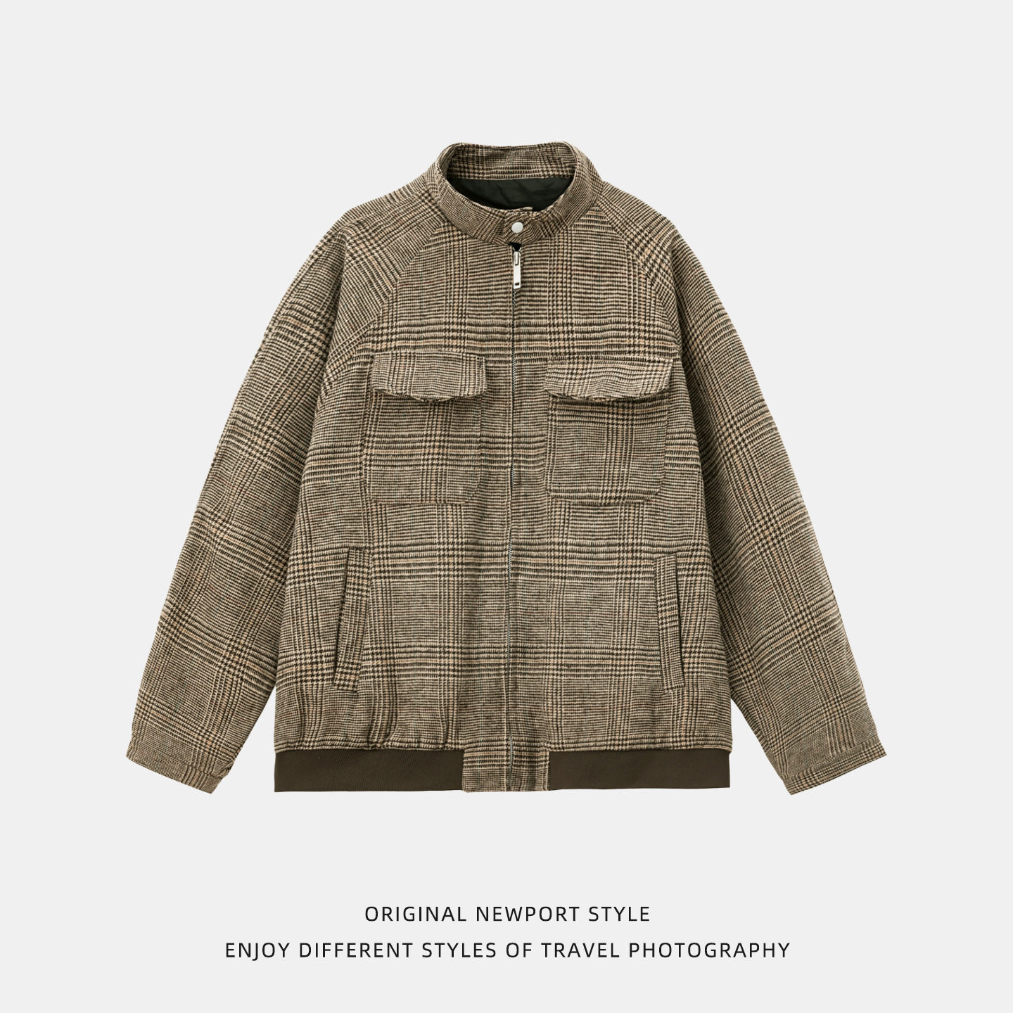 📚 现在就出发王安宇同款千鸟格顿夹克秋季新款双袋短宽立领格子外套