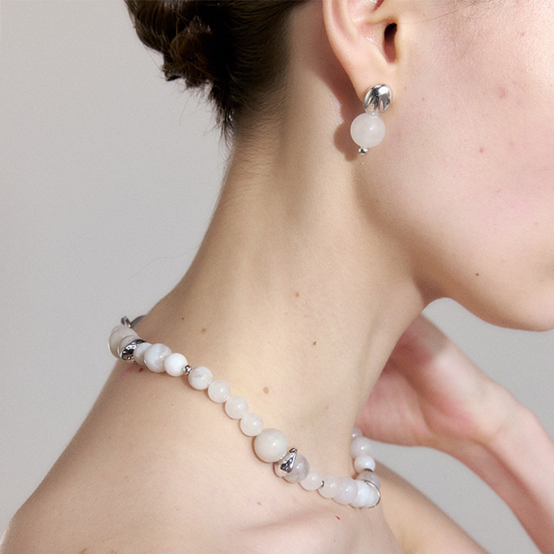 📚 DINN DINN DESIGN原生系列白玛瑙珠珠耳环新中式2024新款高级感