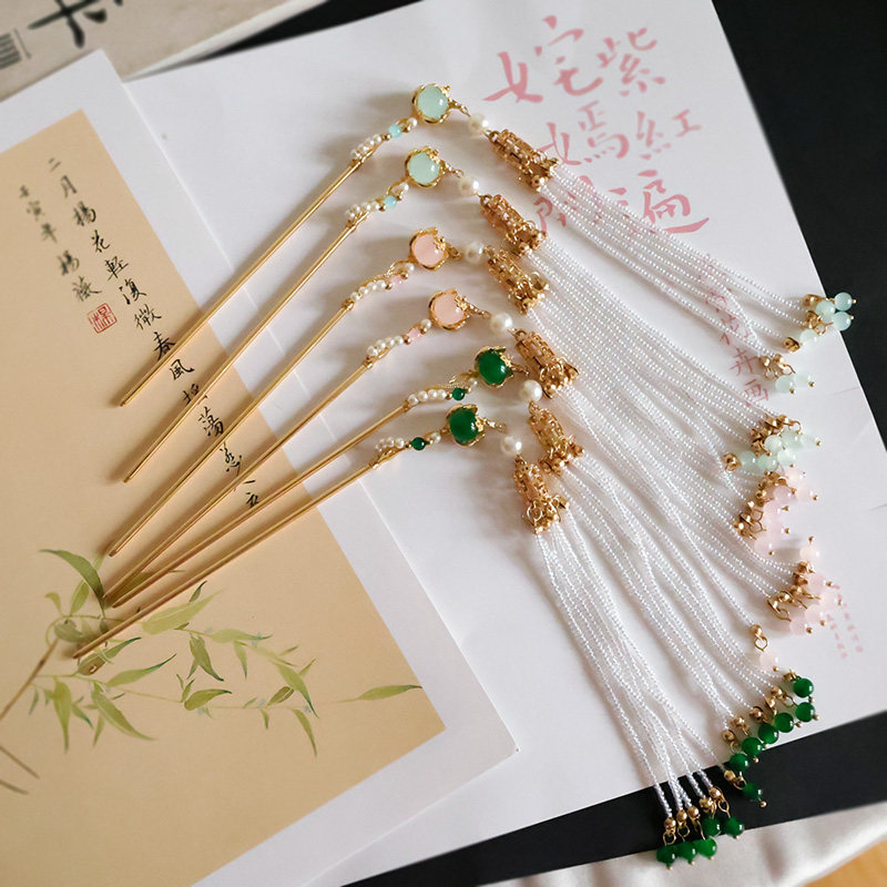 📚 古风长流苏发簪汉服步摇头饰新中式气质发饰盘发簪子明制唐风配饰