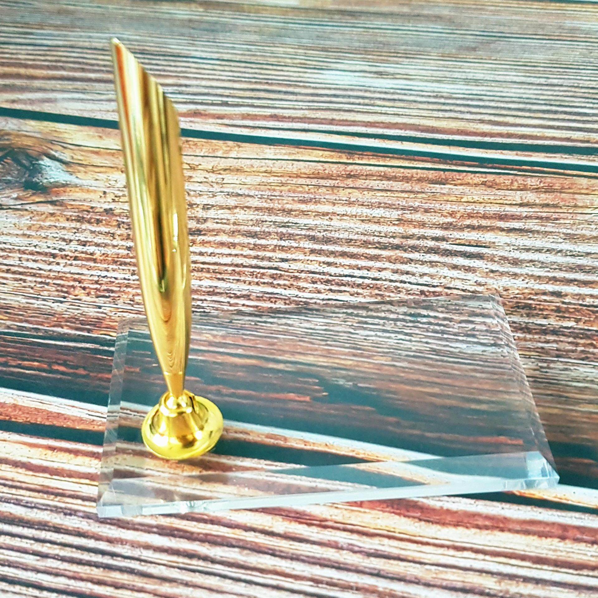 📚 欧式复古羽毛蘸水钢笔笔插水晶底笔座创意亚克力笔座