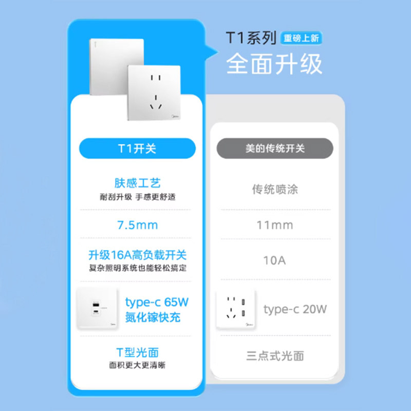 📚 美的开关插座面板家用86型墙壁暗装一开五孔16a三孔空调白色正品