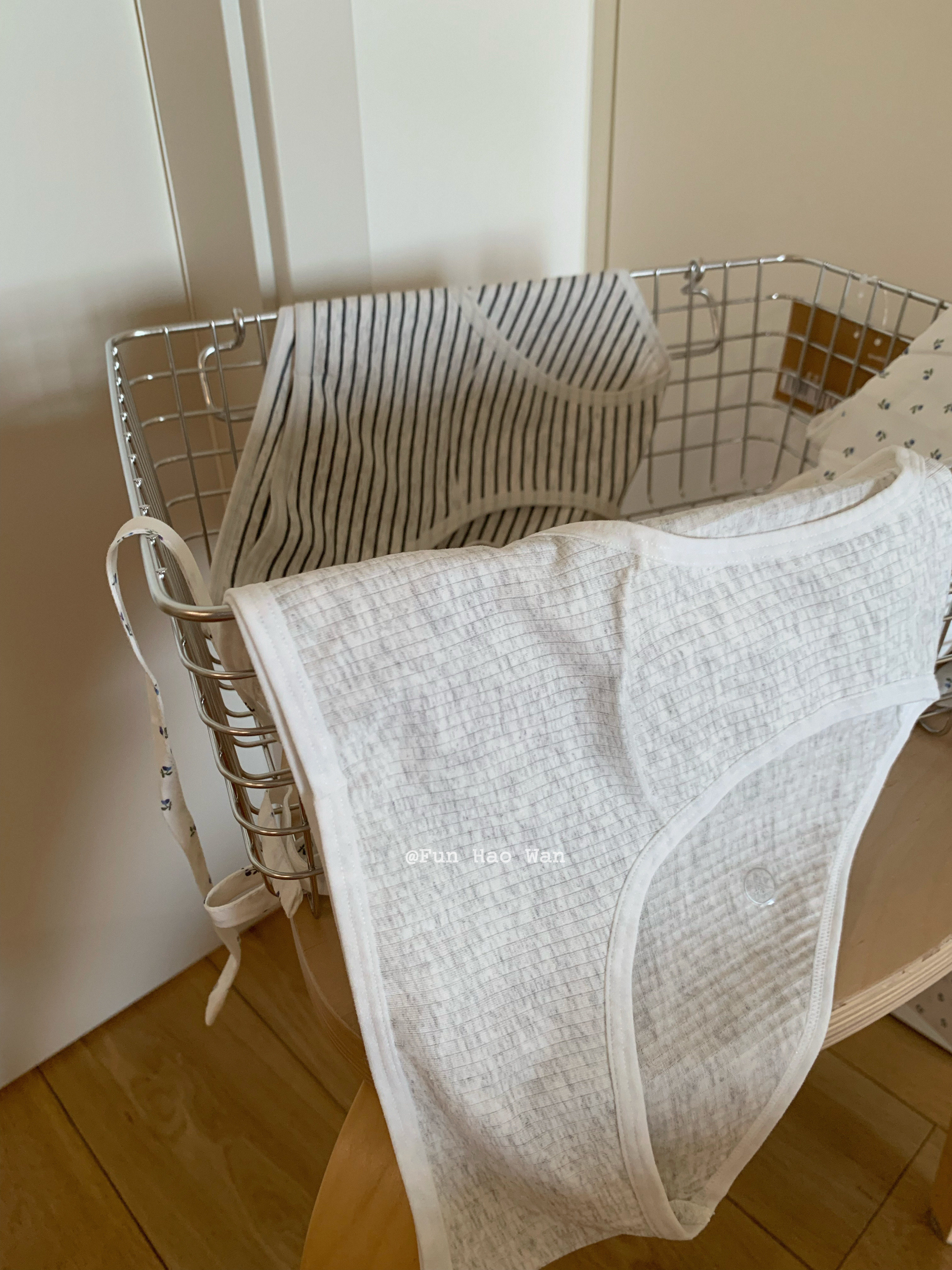 📚 淡人感~加长裆部 灰色系三角 穿不厌条纹棉内裤女 包臀中低抑菌