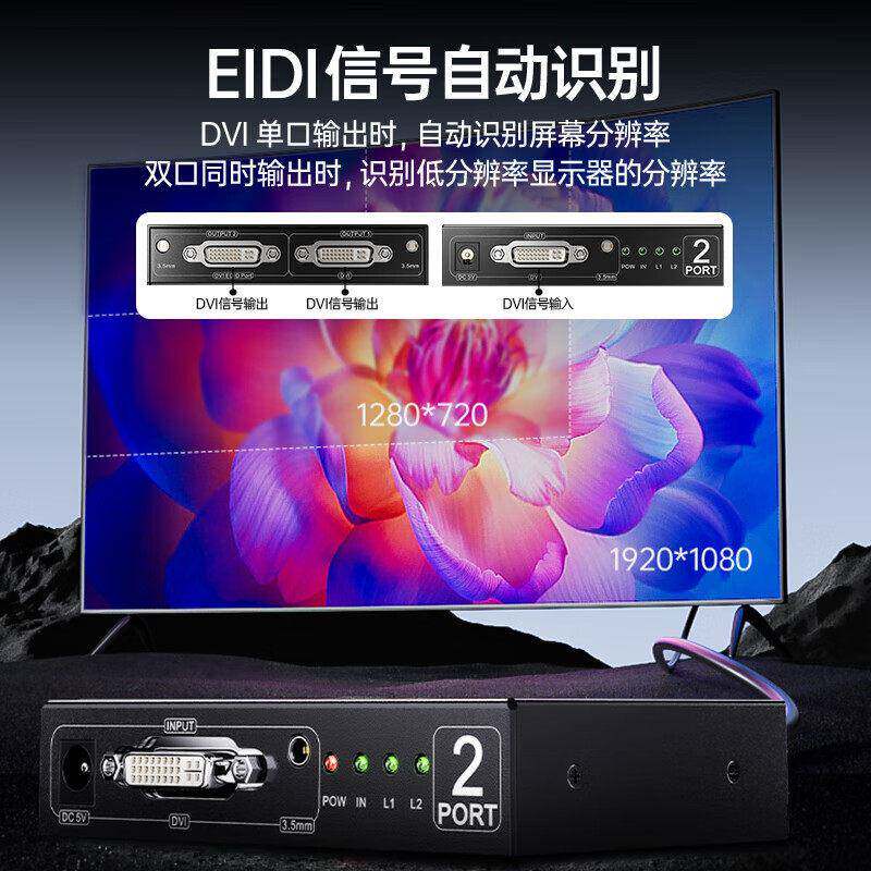 📚 毕亚兹DVI分配器一分二dvi-d24+1分屏器1进2出显示器led屏 HQ16