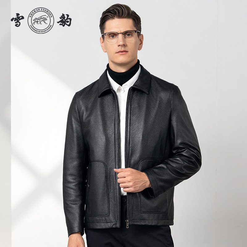 💫解锁冬季时尚新风尚!🎉雪豹真皮皮衣男头层鹿皮商务休闲翻领行政夹克外套,券后仅需4785元💥