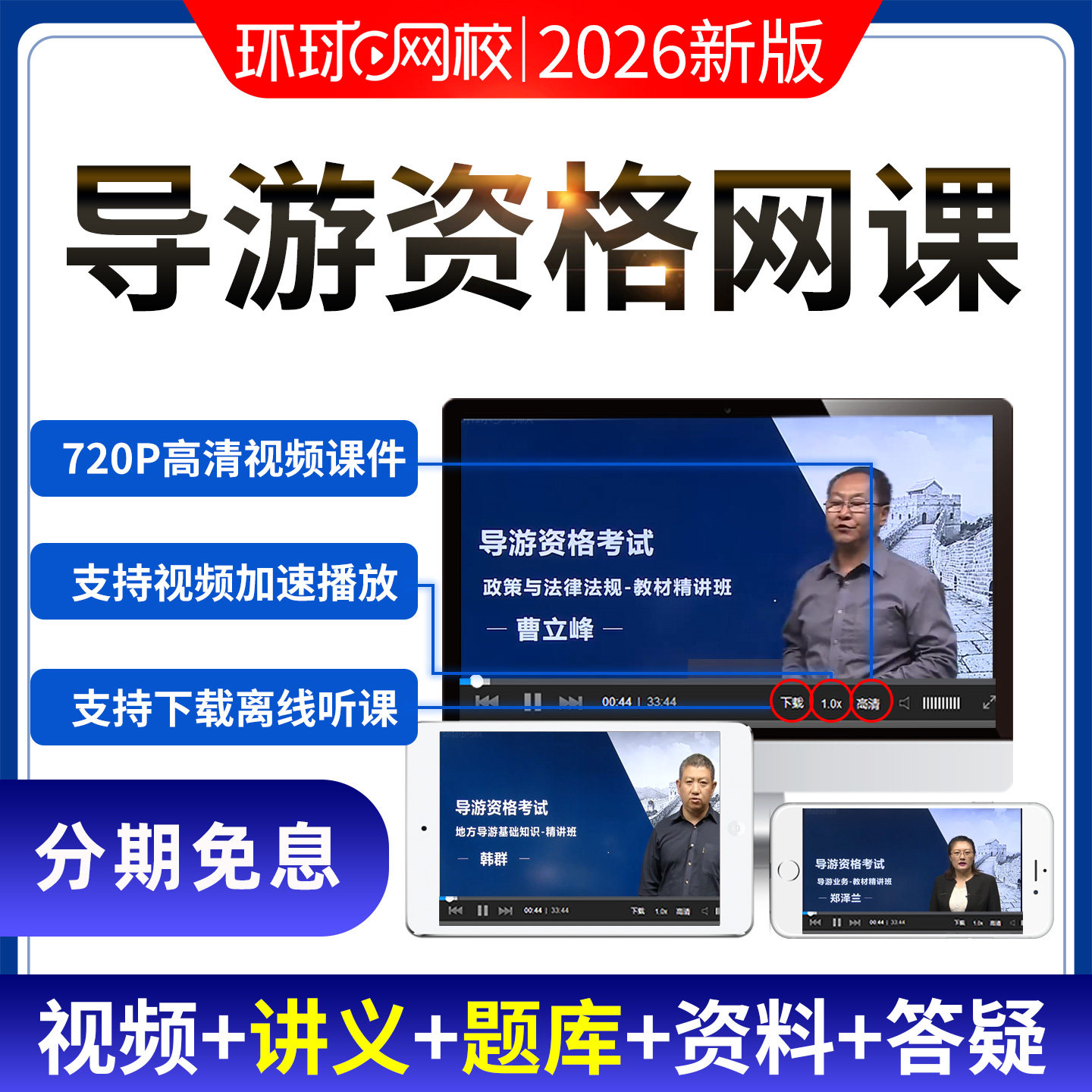 📚 环球网校2026全国导游资格证考试视频课件网课习题历年真题库课程