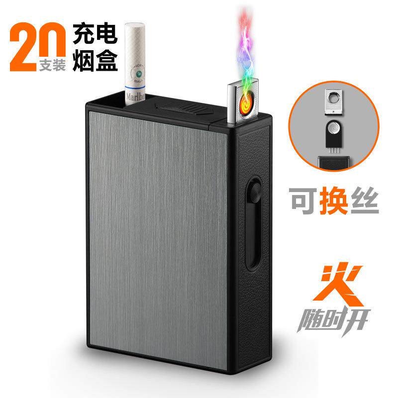 📚 708充电烟盒打火机20只装可换电炉丝防风可定制LOGO激光刻字