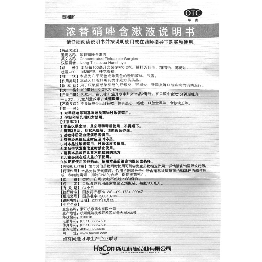 📚 替诺康 浓替硝唑含漱液 100ml