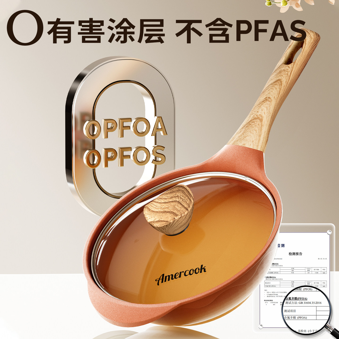 📚 amercook阿尔菲塔复古陶土不粘锅平底一人食小炒锅电磁炉两人家用