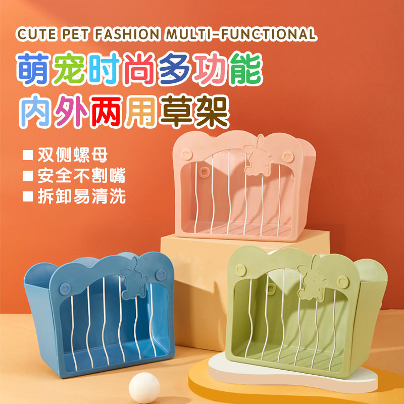 📚 洁西兔子内置草架大容量豚鼠龙猫草架食草盆防浪费防扒草固定防翻