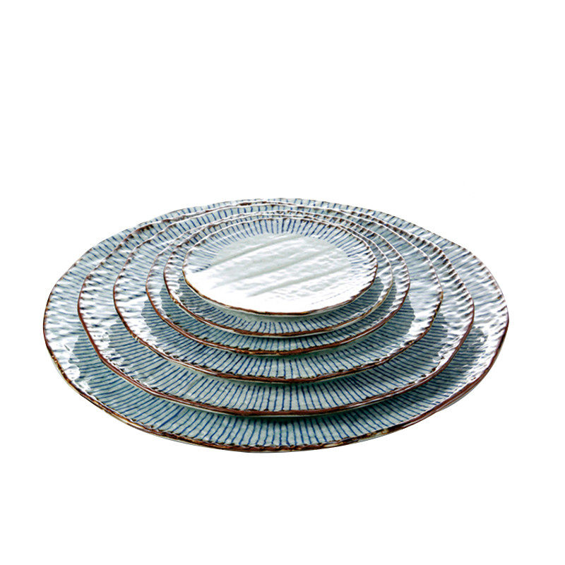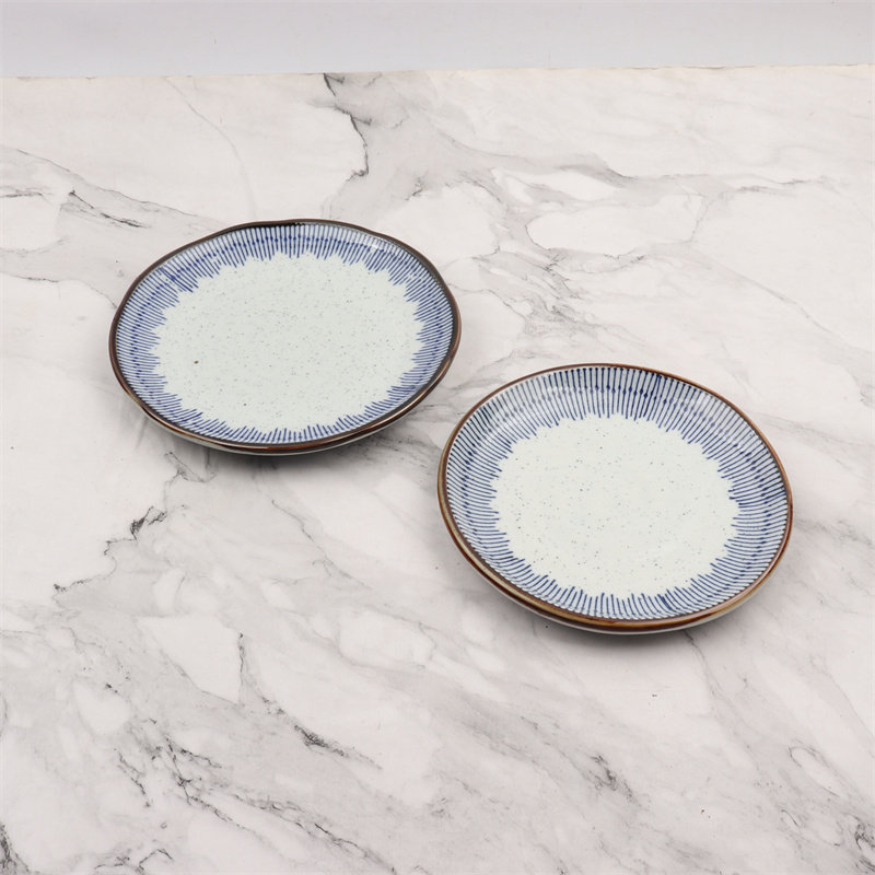 📚 日式骨碟6寸7寸8寸摆台盘子底碟三分烧陶瓷日韩料理酒店蓝雨碟