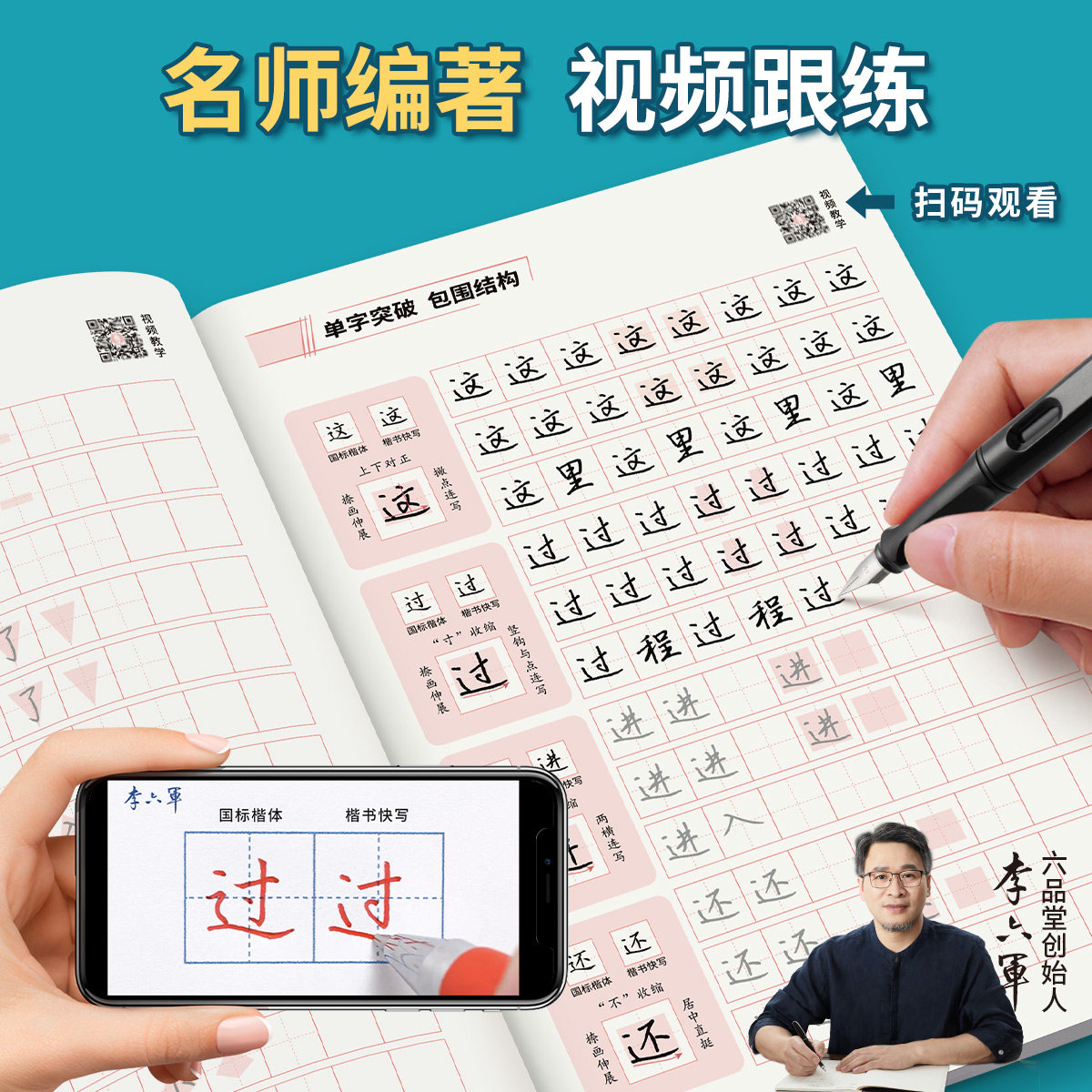 📚 六品堂李六军楷书快写字帖成人练字应试申论公务员考试专用考研初中生高中大学生钢笔硬笔书法控笔训练临摹描红楷体行楷练习练字帖