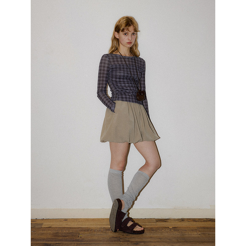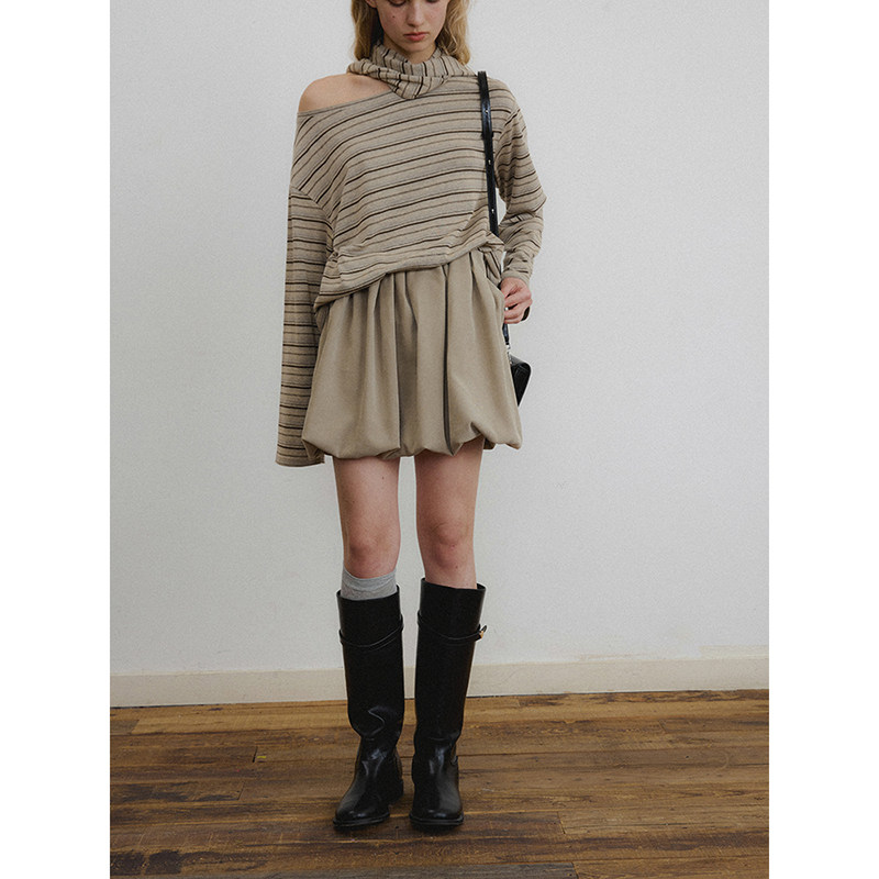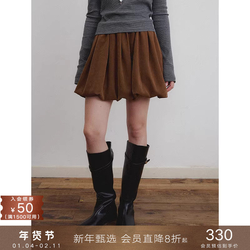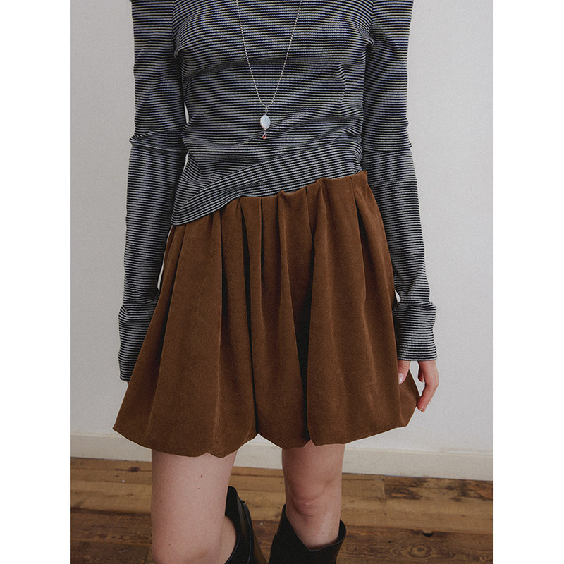 📚 popchrio◆复古磨毛麂皮花苞半身裙甜美高腰短款a字蓬蓬气球裙子