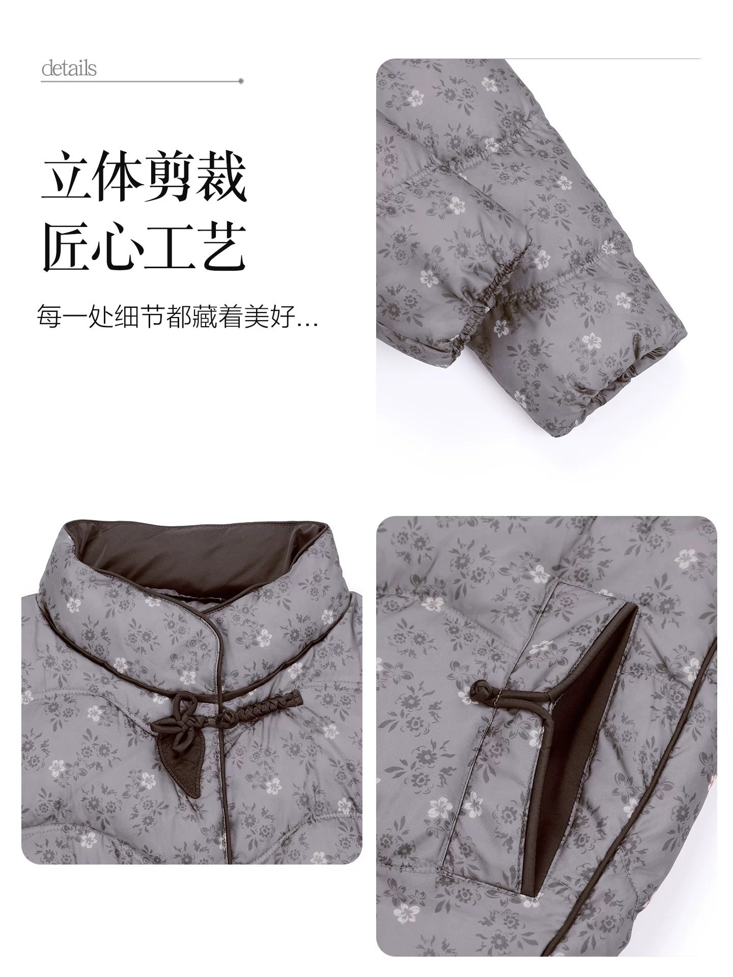 📚 丝瑞sr-050妈妈小碎花复古羽绒服短款上衣奶奶保暖立领白鸭绒外套