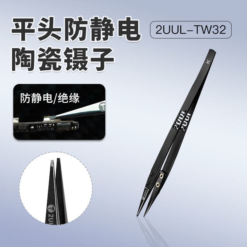 📚 2UUL TW32黑陶K平头防静电陶瓷镊子电池移植电芯维修扁头镊子