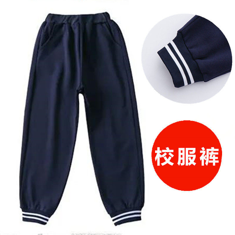 📚 春夏季纯棉二条杆宽松小学生校服裤子男女童长裤深蓝色藏青色校裤