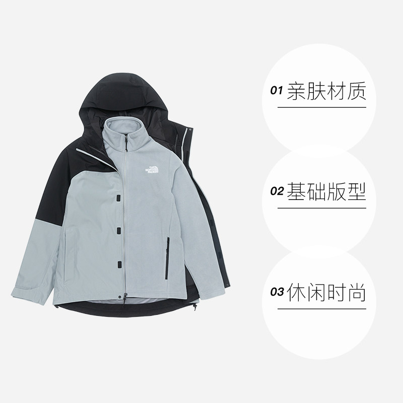 📚 【自营】THE NORTH FACE北面冲锋衣防风保暖男款三合一摇粒绒外套