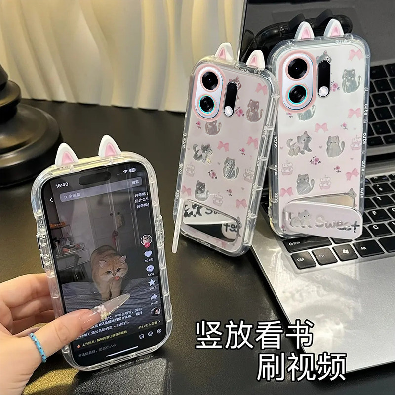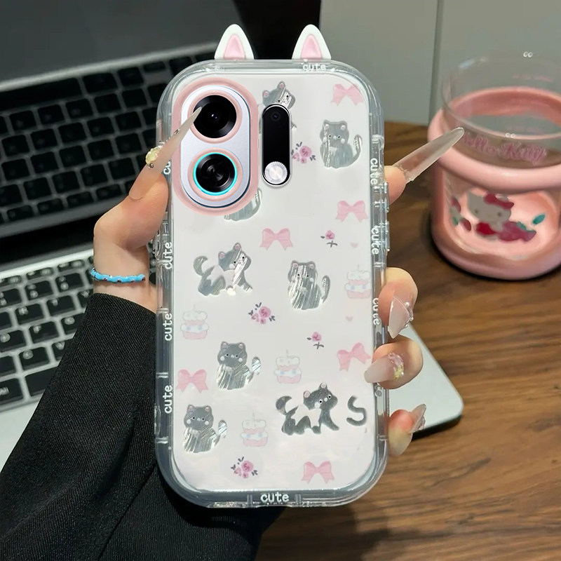 📚 适用OPPOK13TurboPro手机壳新款K12s卡通12x猫咪蝴蝶结K11x羽纱泡芙壳K10Pro硅胶保护套K9s防摔OPPOK9Pro外壳