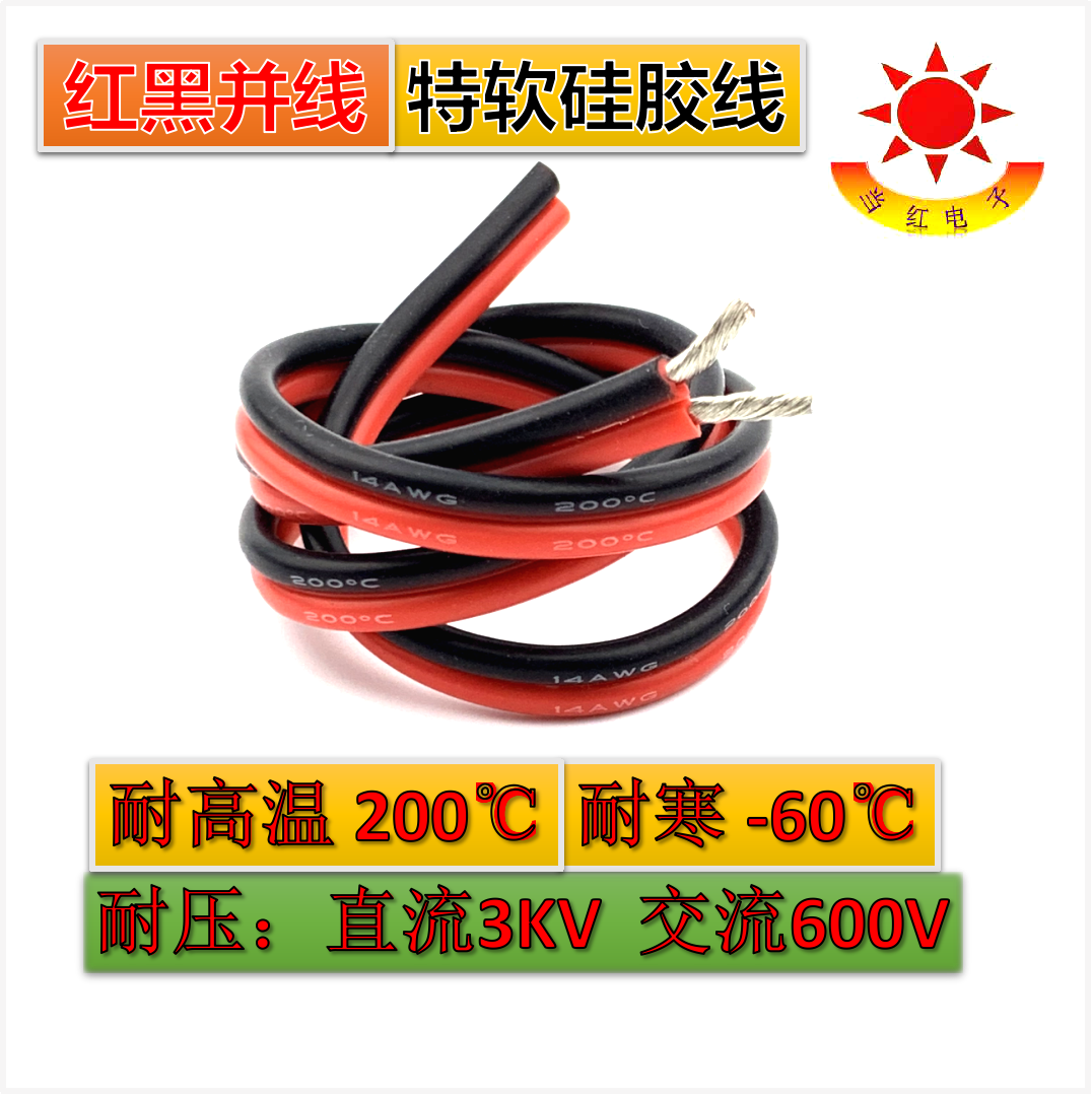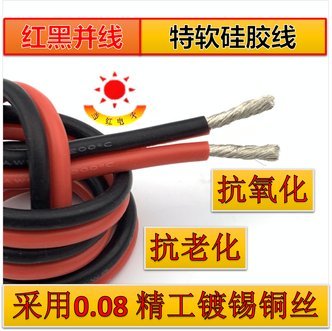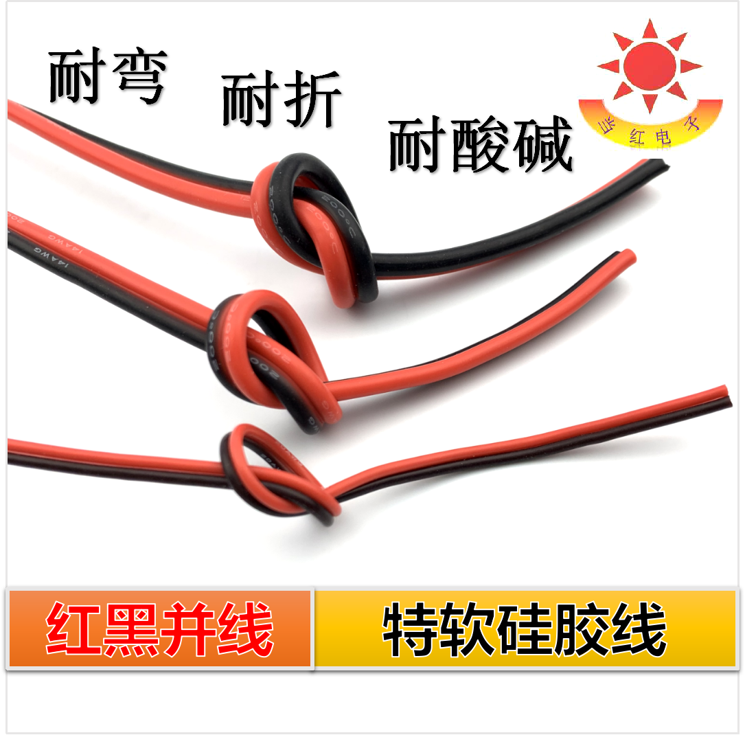📚 硅胶红黑线2芯双并线特软硅胶线耐高低温24AWG~12 10AWG超柔美标