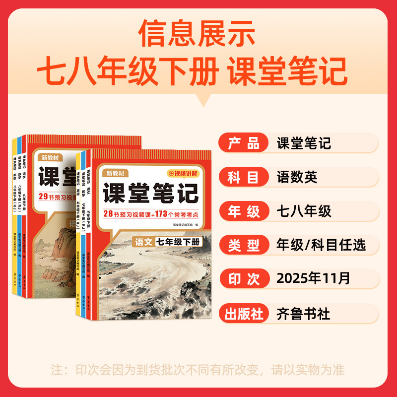 亲爱的小伙伴们,今天我要分享一款超级实用的笔记产品——'2026新教材课堂笔记七八年级下册上册语文数学英语人教版北师外研版同步课本初一常考知识点初中教材全解读教材帮黄冈学霸随堂笔记'!
