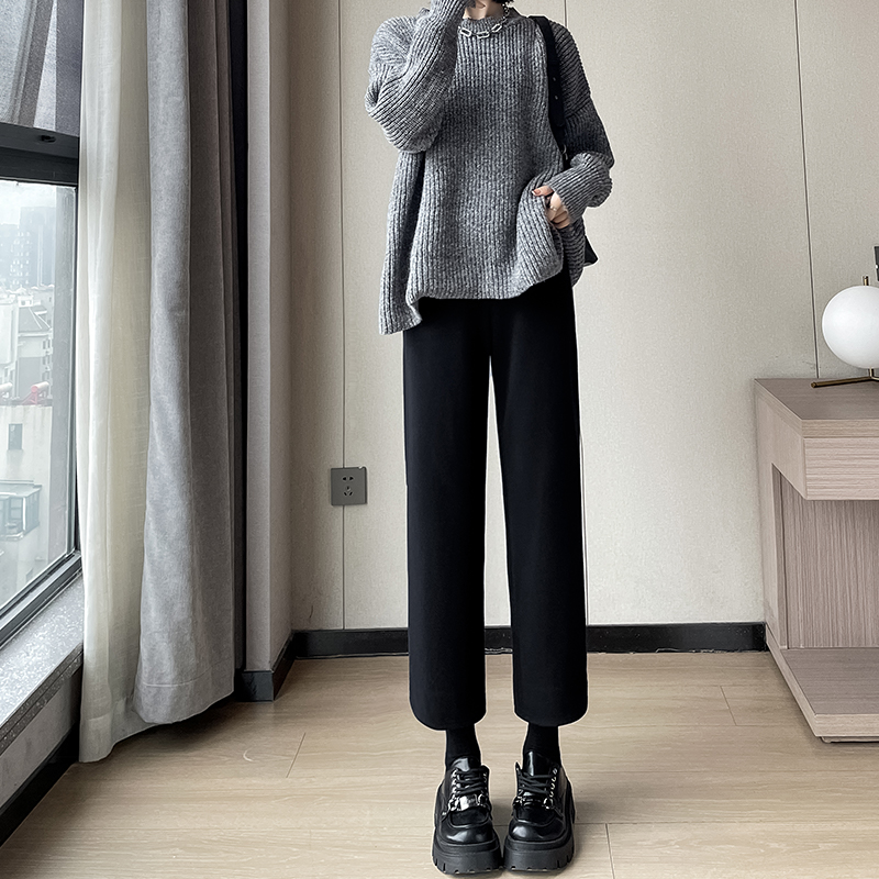 📚 九分毛呢裤女秋冬高腰小个子休闲阔腿直筒裤子加绒加厚烟管西装裤