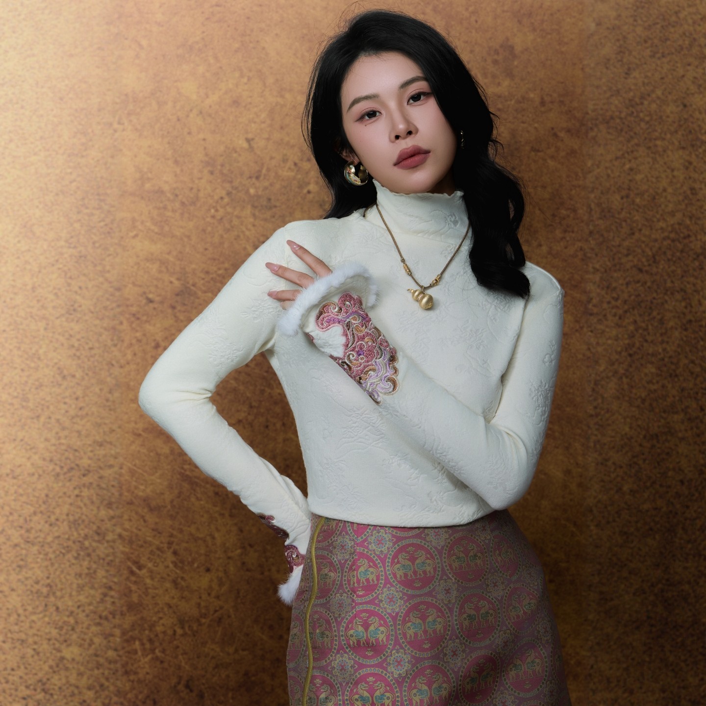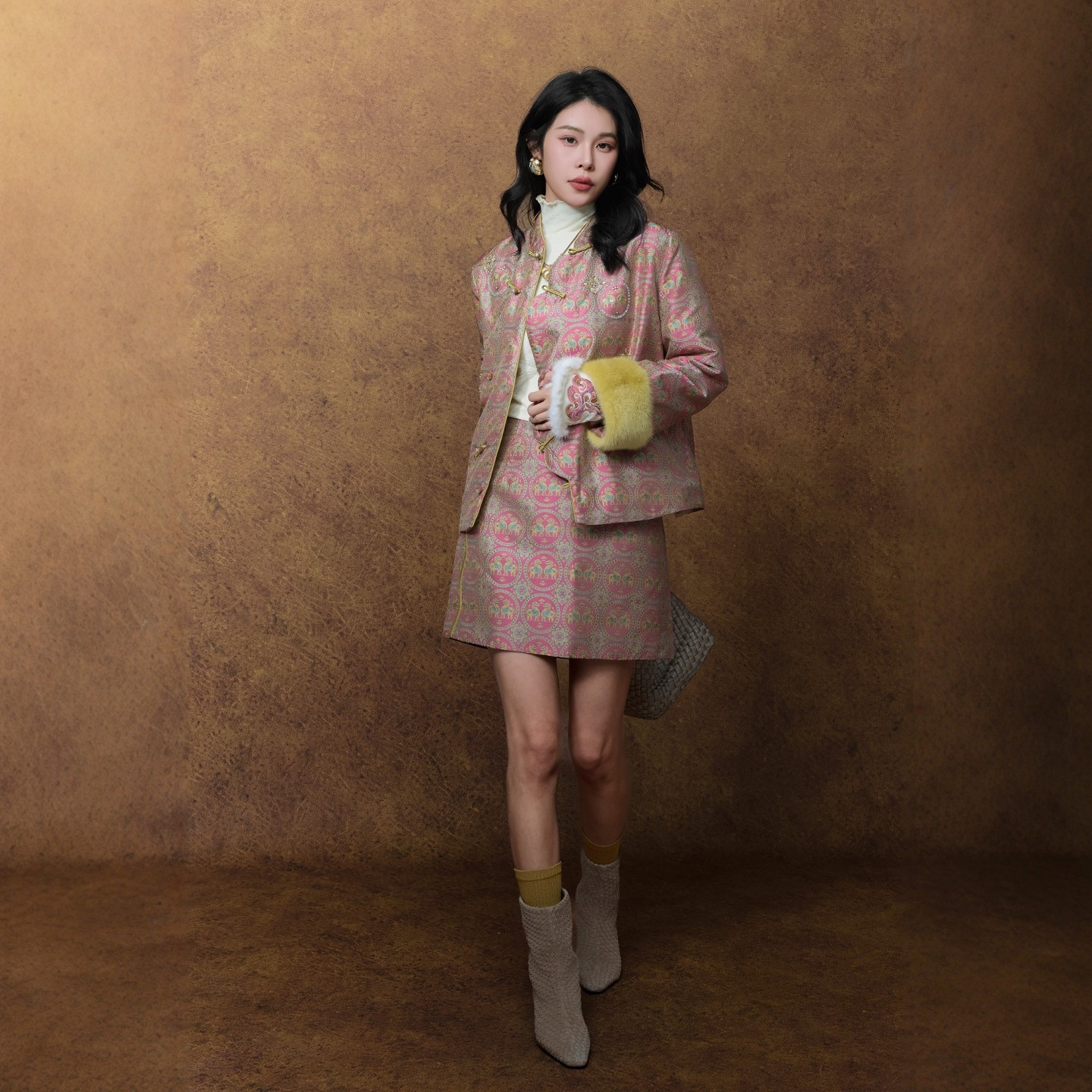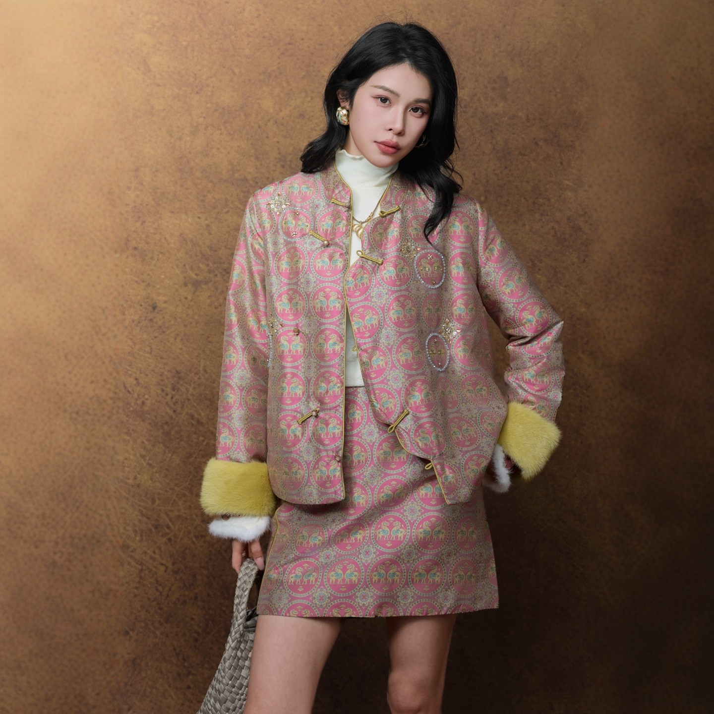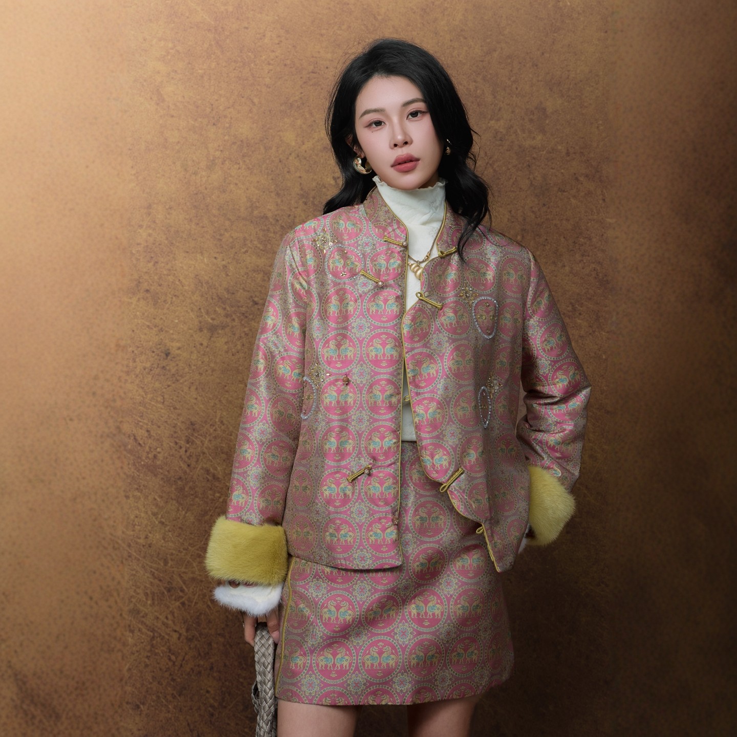 📚 100%桑蚕丝蜀锦驼绒棉服外套2025秋冬新中式雪貂保暖套装独家原创
