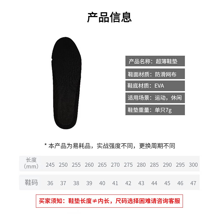 📚 超薄篮球运动鞋垫宽脚高脚背降低重心夏季透气防臭专业跑步扁平足