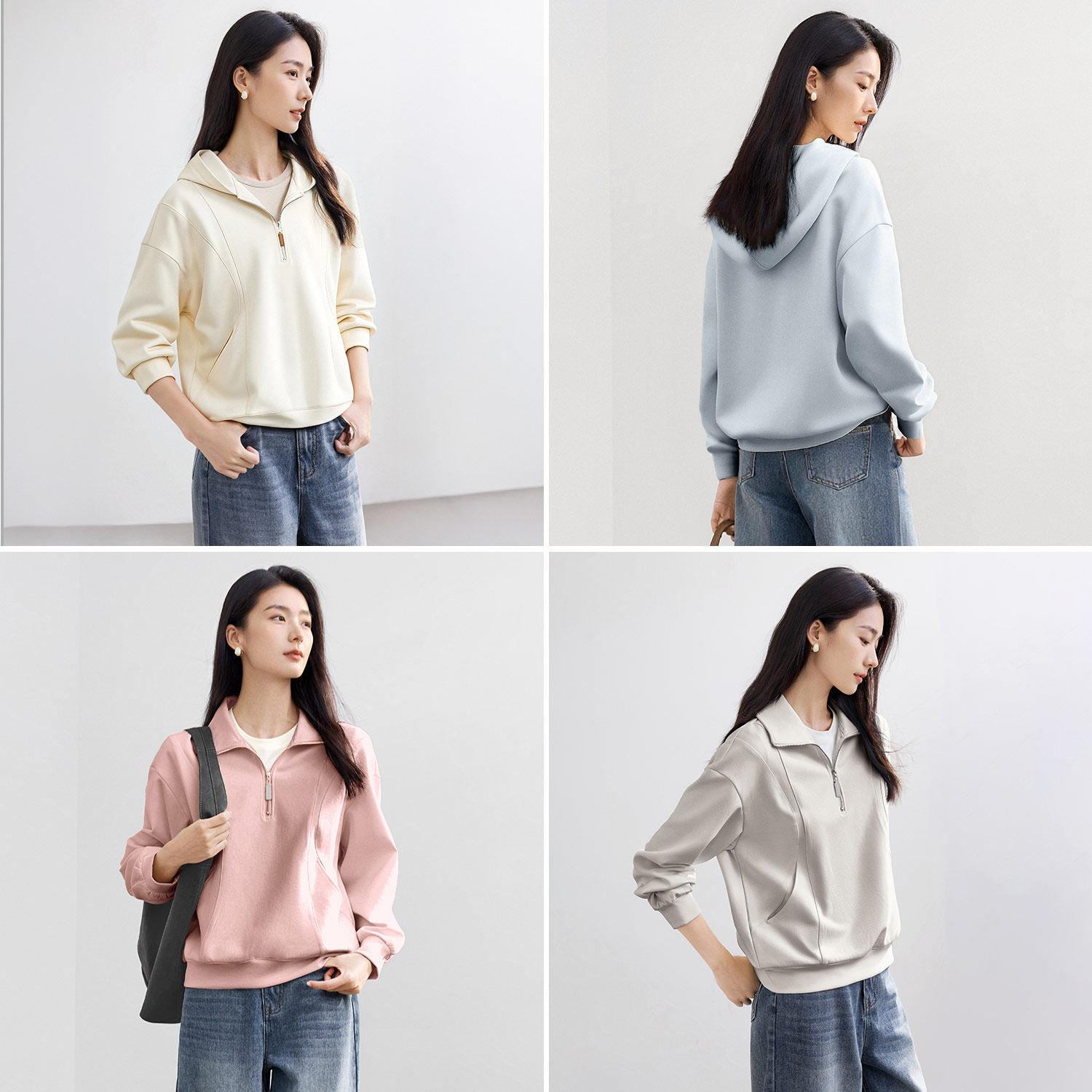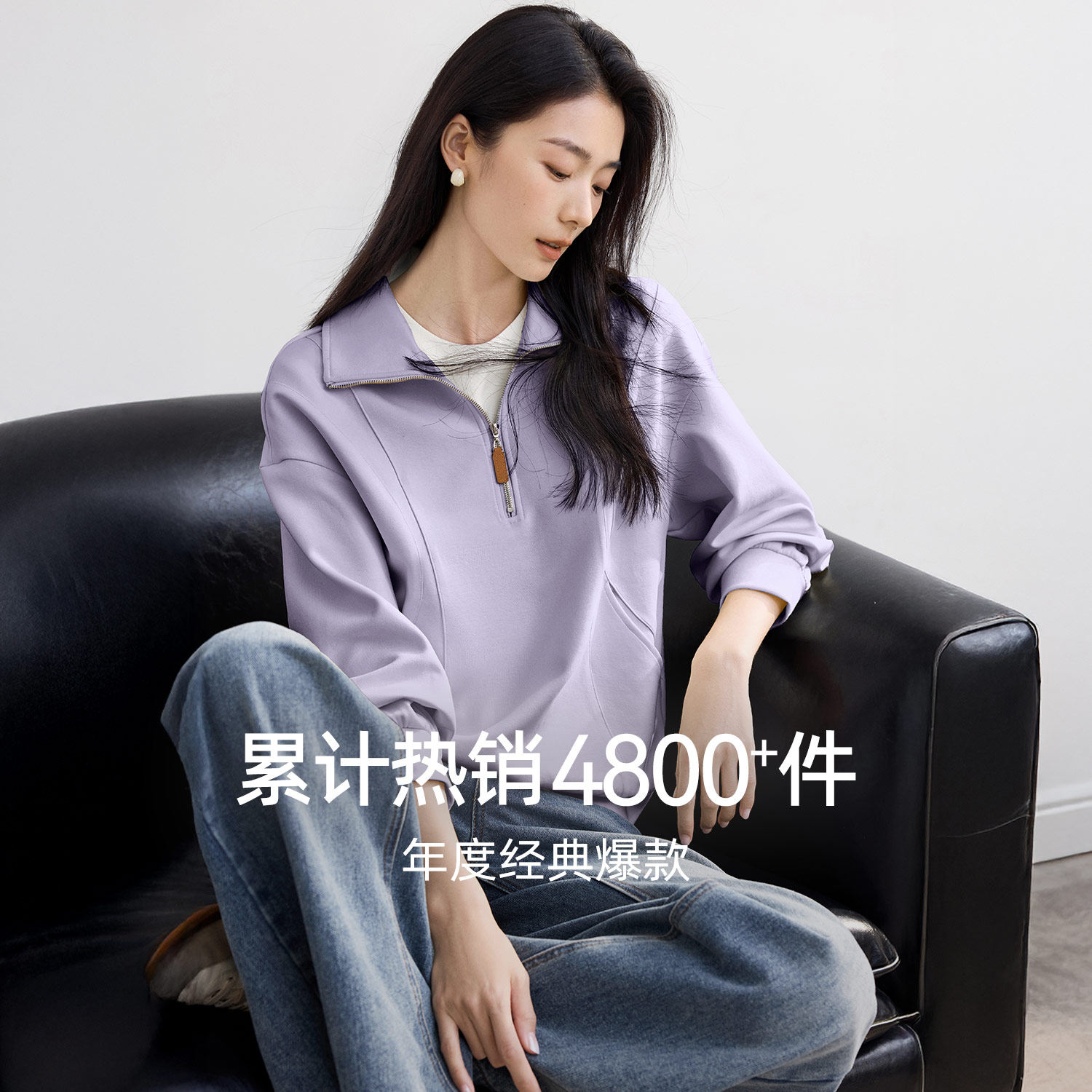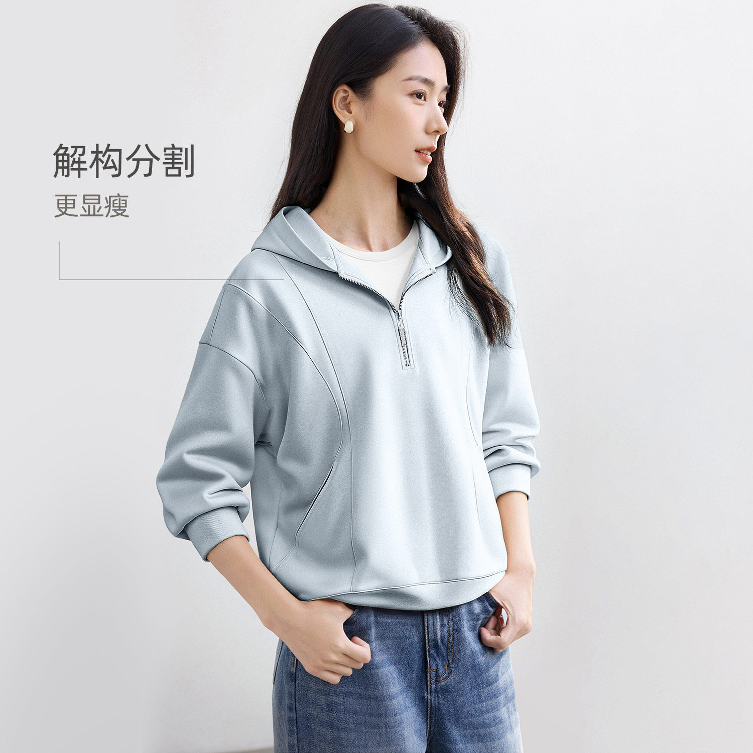 📚 IHIMI海谧美式半拉链减龄宽松白色卫衣女春春季显瘦休闲百搭上衣