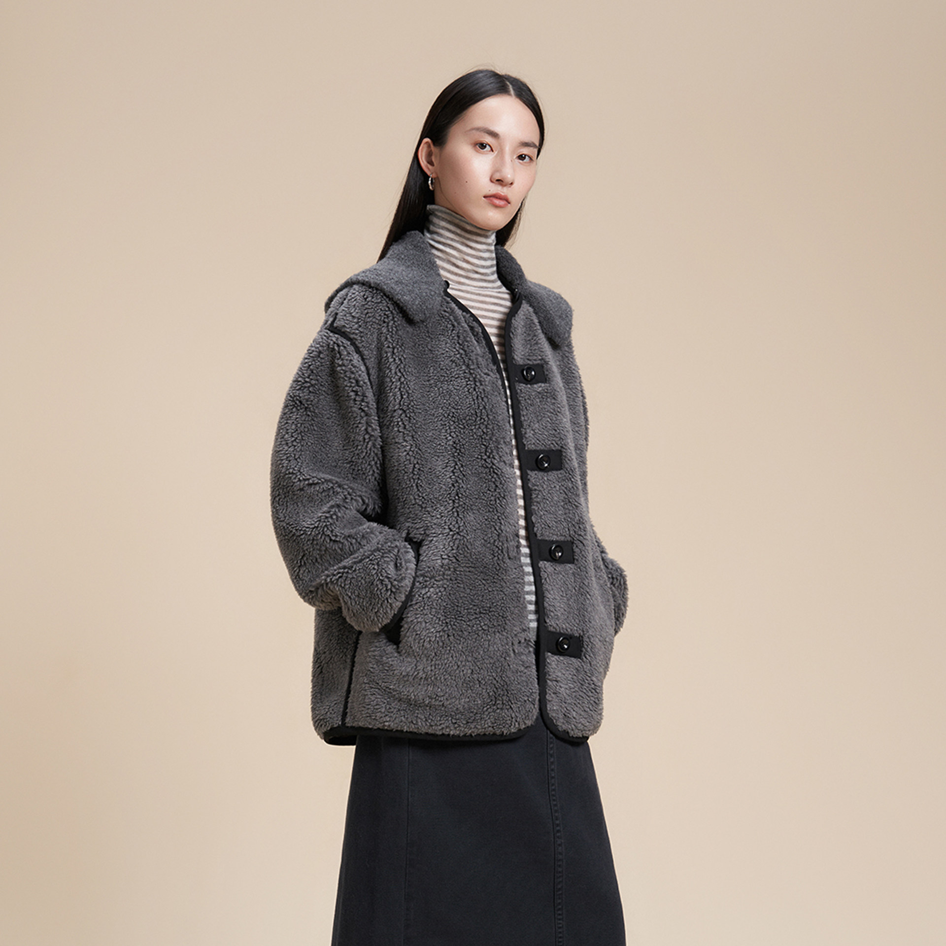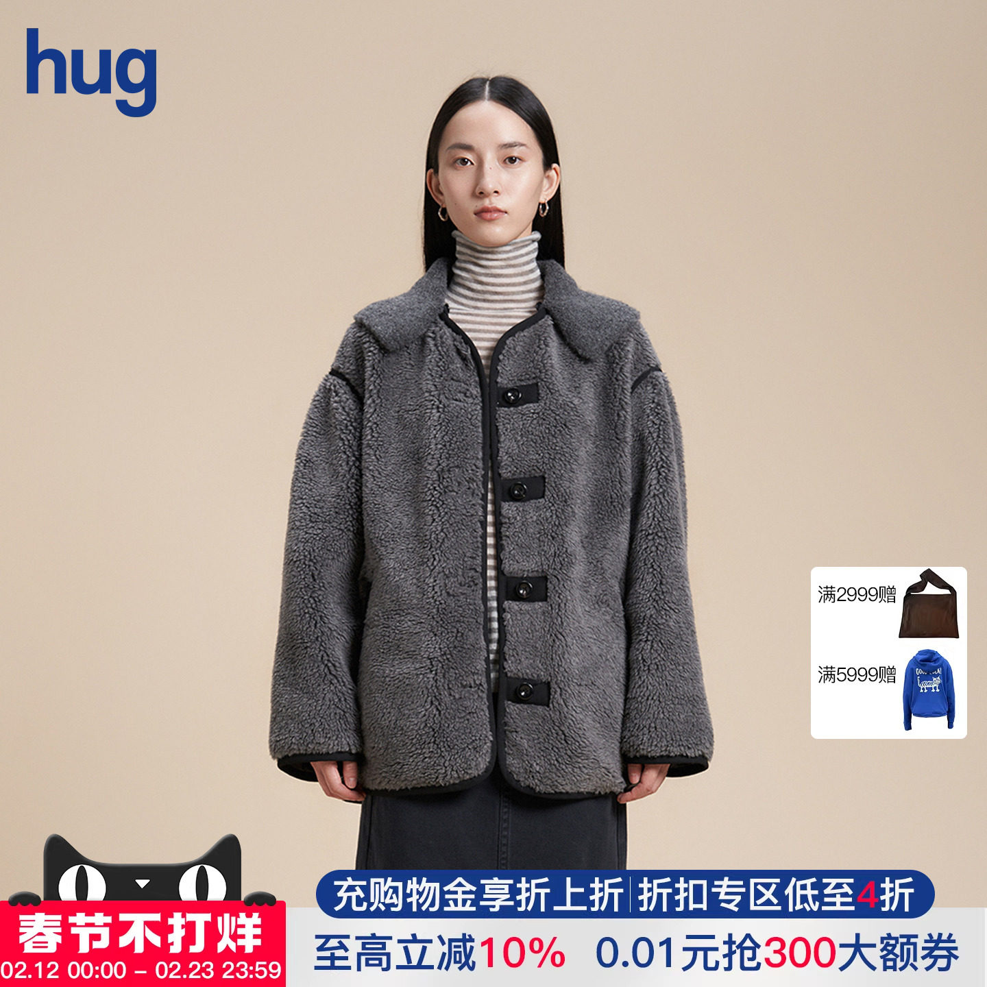📚 【WHM】hug 女士百搭休闲羊驼毛带帽外套呢子大衣