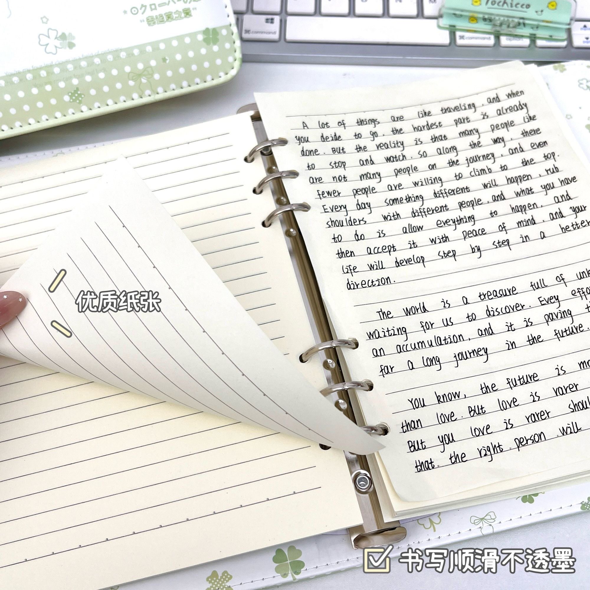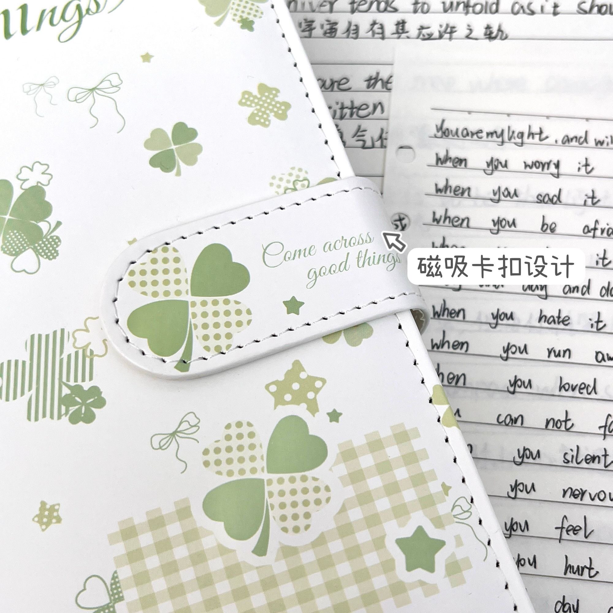 📚 四叶草A5皮质活页本小清新记事本周计划本学生笔记本可拆卸记事本