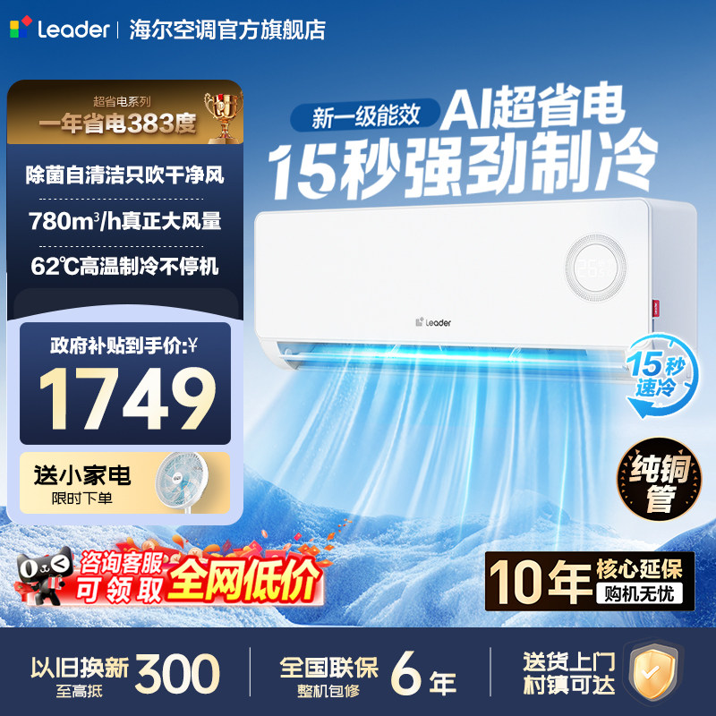#海尔智家 #Leader空调 #新一级变频 #家用挂机 #双排铜管蒸发器 #券后价3500 #家居好物