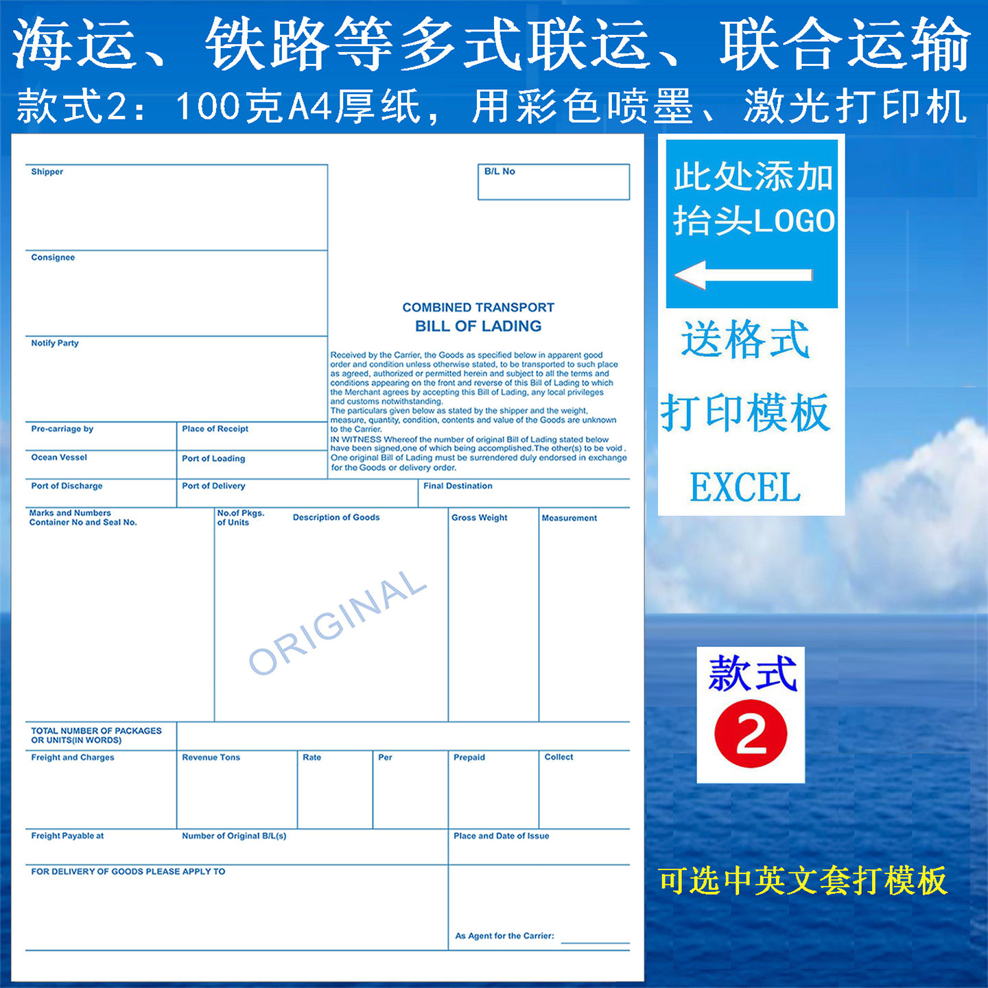 🎁这款单据是采用海运提单的形式,无论是货代还是船代都非常适用。它具有中性、通用、现货的特点,非常适合日常的进出口业务。而且,它采用A4厚纸制作,背书清晰,非常适合作为货物的凭证。