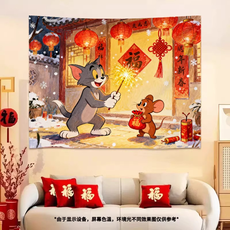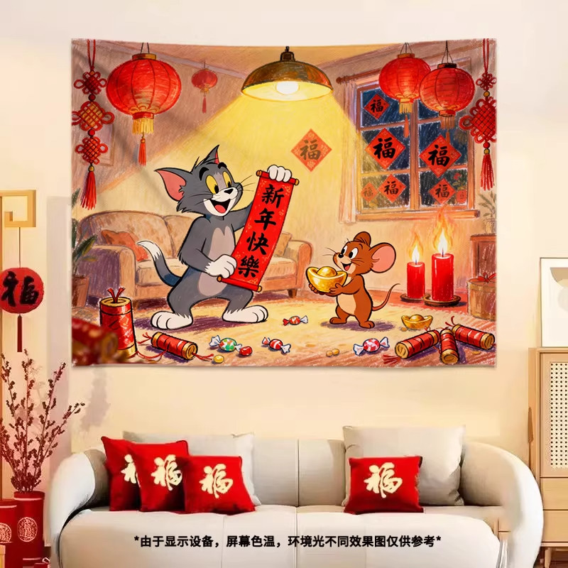 📚 新年喜庆背景春节挂布氛围卧室装饰房间床头挂毯画布客厅墙壁遮丑