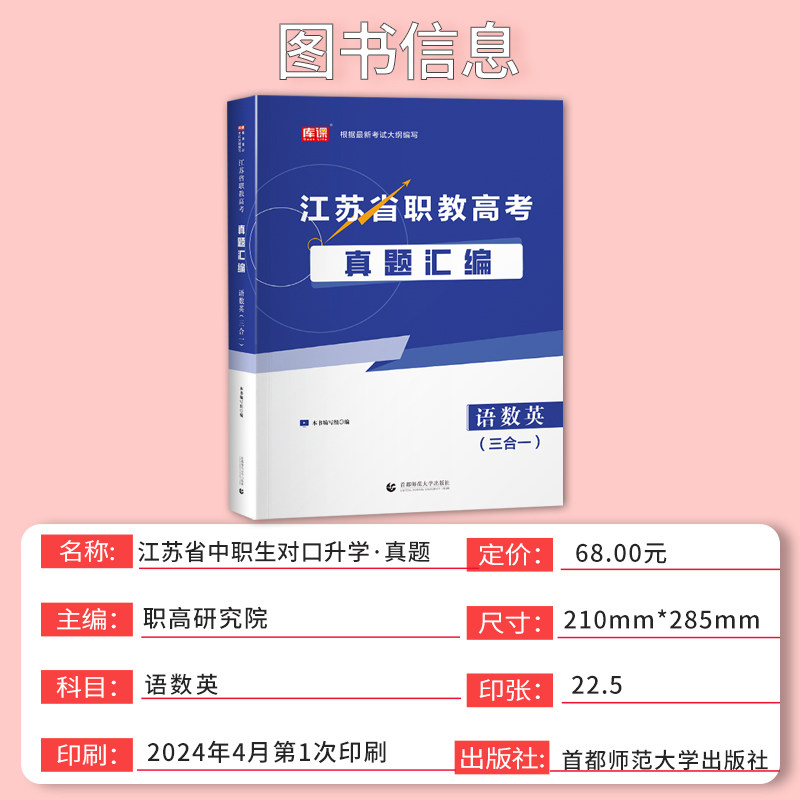 📚 2026新版库课江苏省职教高考语文数学英语真题汇编合订本三合一中等职业教育对口升学复习教材模拟试卷高考辅导教材复习资料