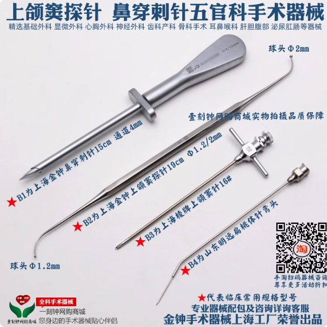 📚 上海金钟上颌窦探针 上颌鼻窦探针 鼻穿刺针 五官科手术器械