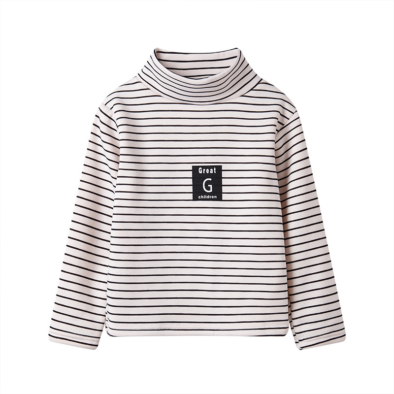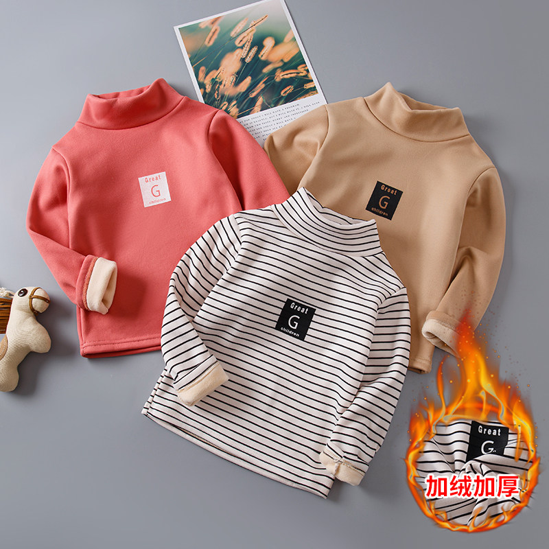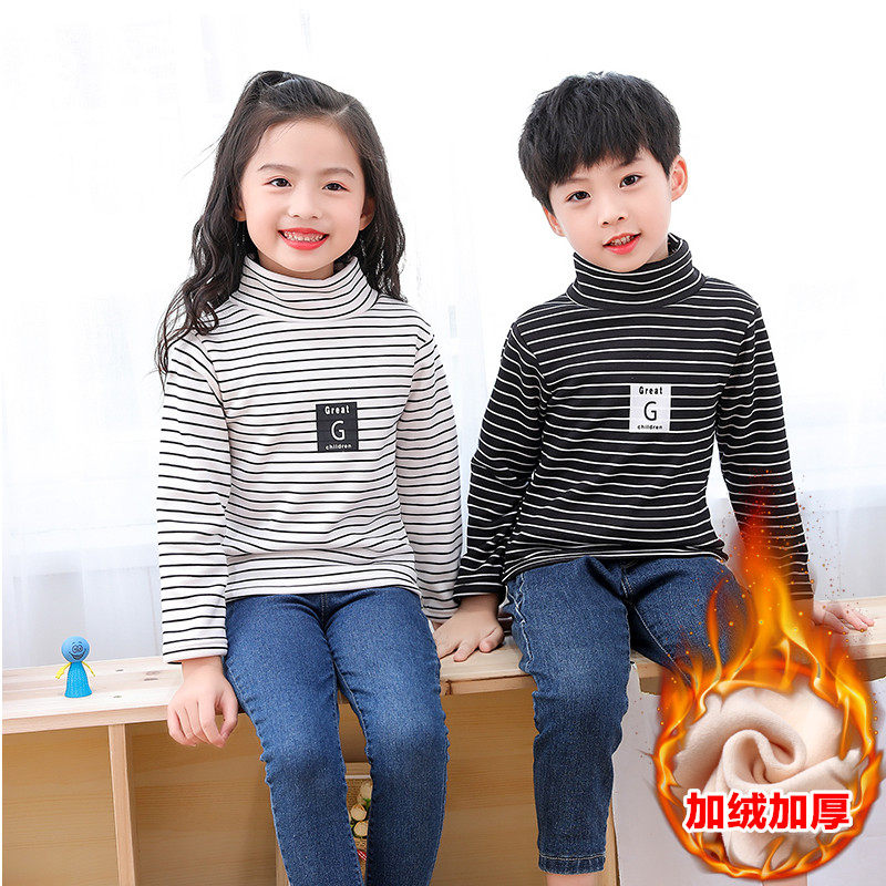 📚 儿童高领加绒打底衫男女童保暖上衣加厚一体绒宝宝条纹T恤长袖冬