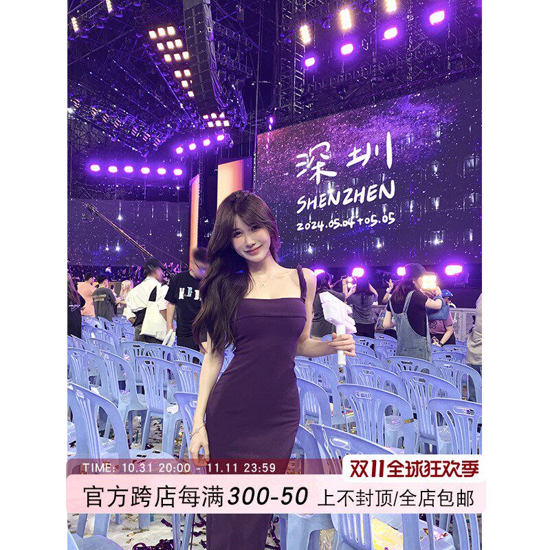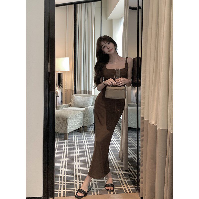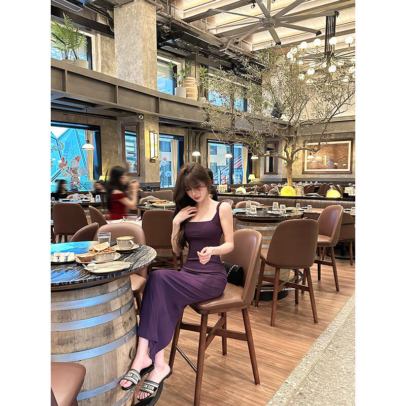 📚 愉悦愉悦开叉设计感收腰吊带连衣裙女夏季修身显瘦性感包臀长裙