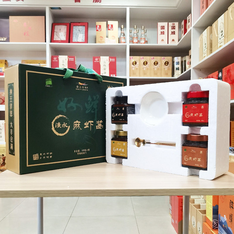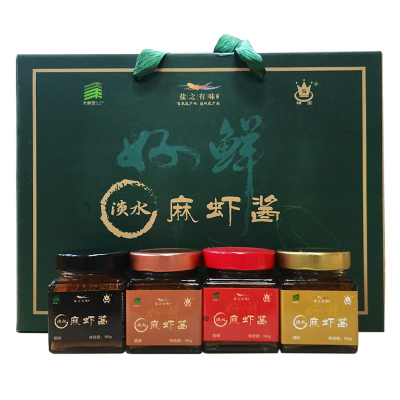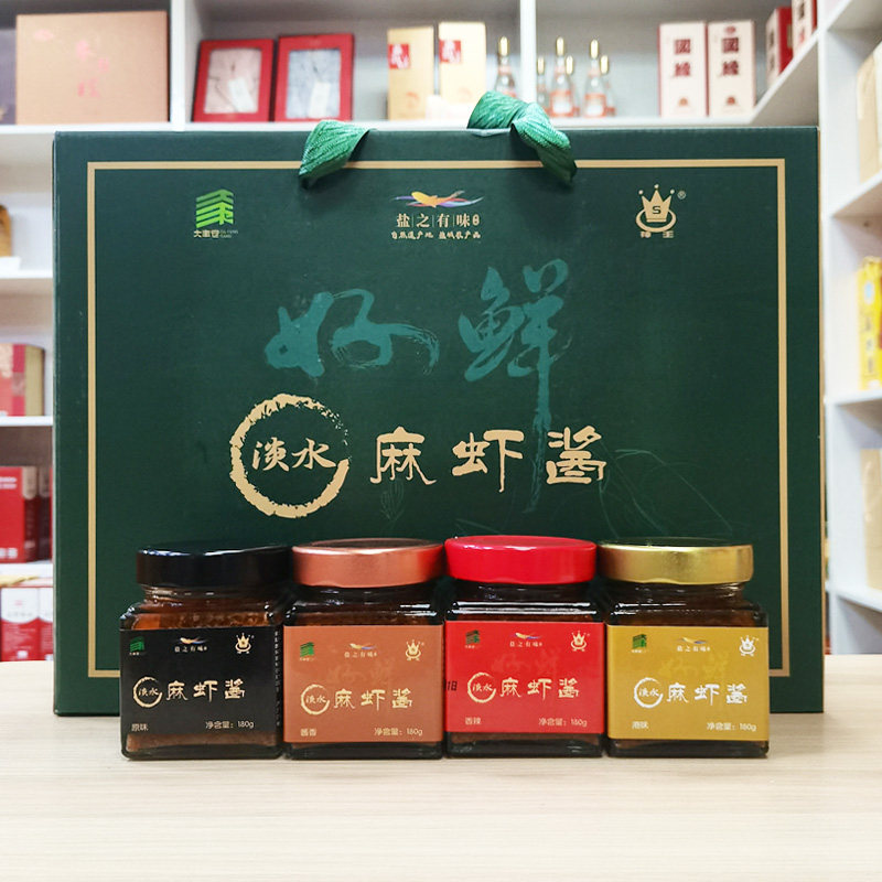 📚 大丰神王淡水麻虾酱礼盒180g*4瓶盐城特产原味酱香港味香辣海鲜酱