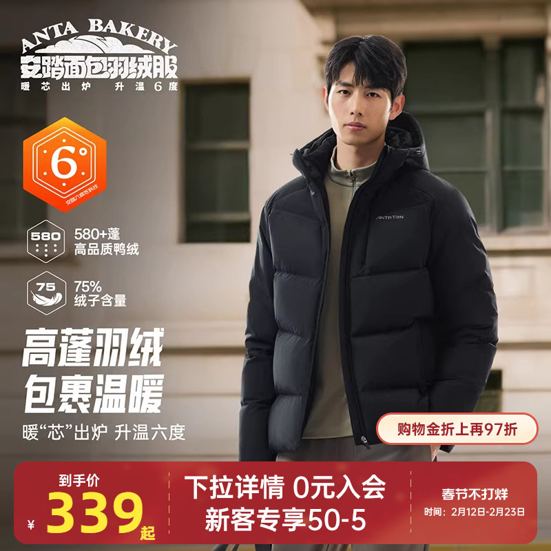 📚 安踏面包羽绒服男子加厚短款连帽冬季新款防泼水户外羽绒休闲棉服