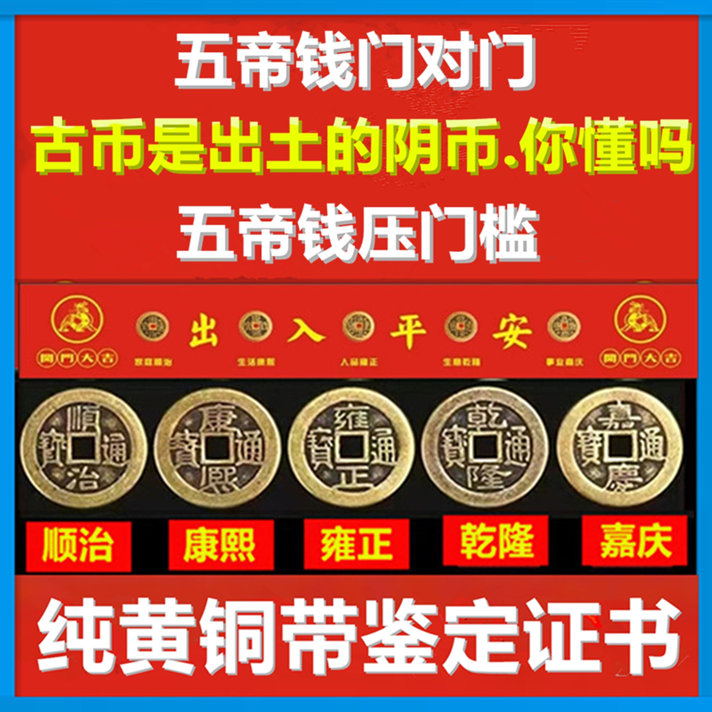 📚 入户门真品大五帝钱压门槛石下专用装修出入平安铜钱古币对门挂件
