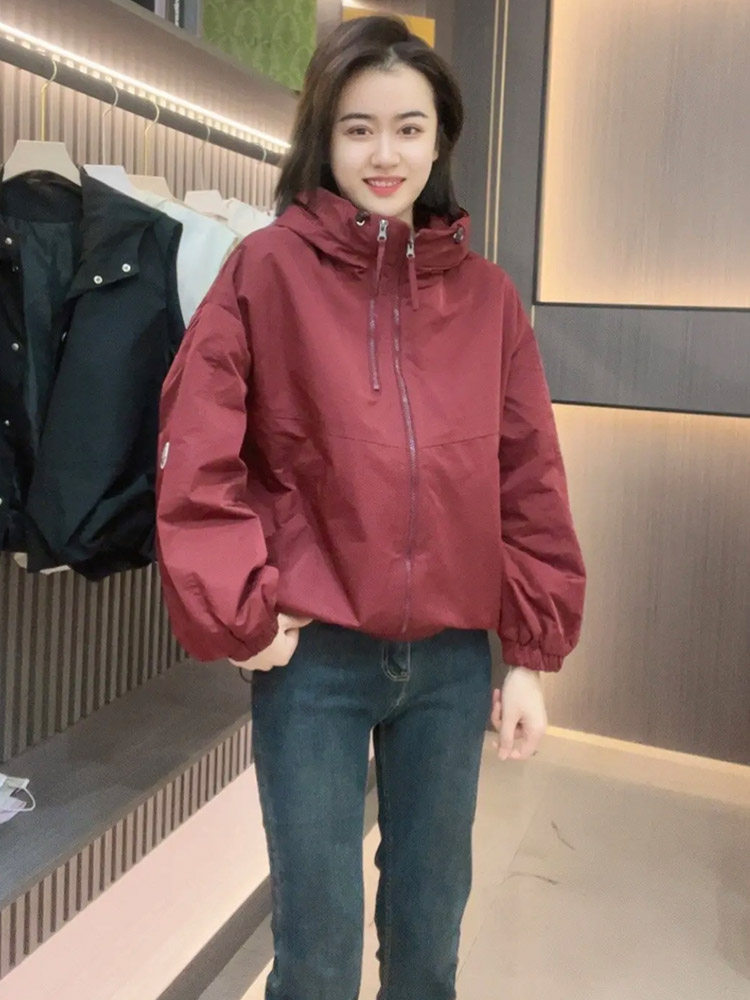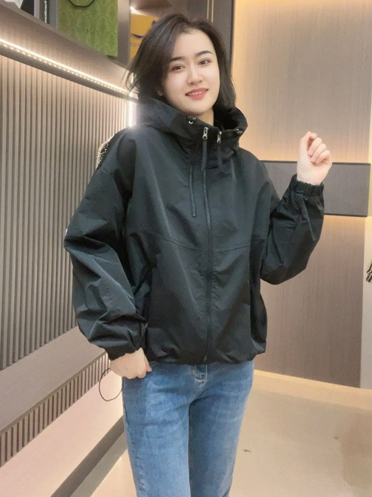 📚 正品双拉链连帽外套女小个子2025春季新款爆款休闲短款冲锋衣上衣