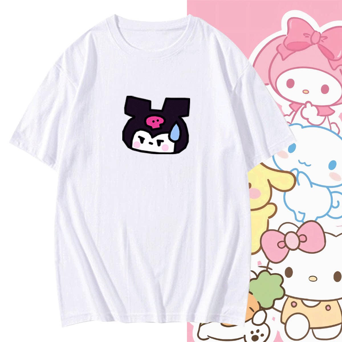 📚 三丽鸥流汗表情包卡通情侣休闲库洛米帕恰狗联名夏可定制短袖T恤