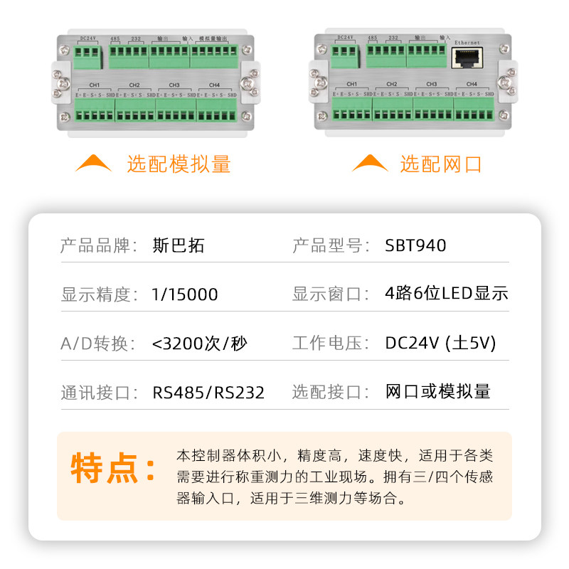📚 斯巴拓 SBT940四通道称重测力压力仪表工业自动化配料秤称重网口