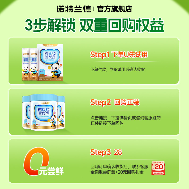 📚 【U先试用】诺特兰德有机液体钙铁锌儿营养直饮包补官方童钙片