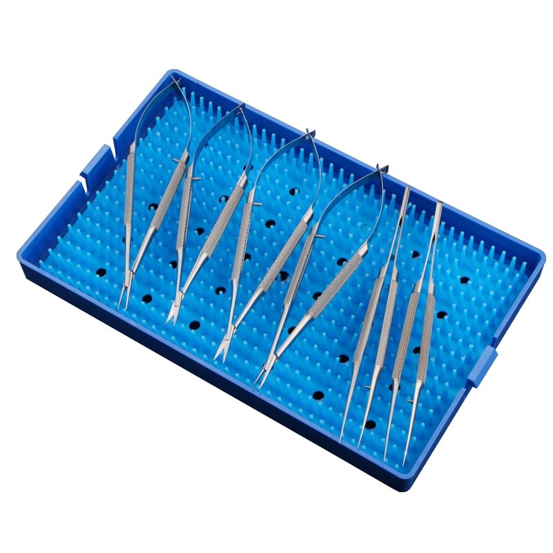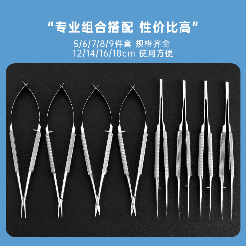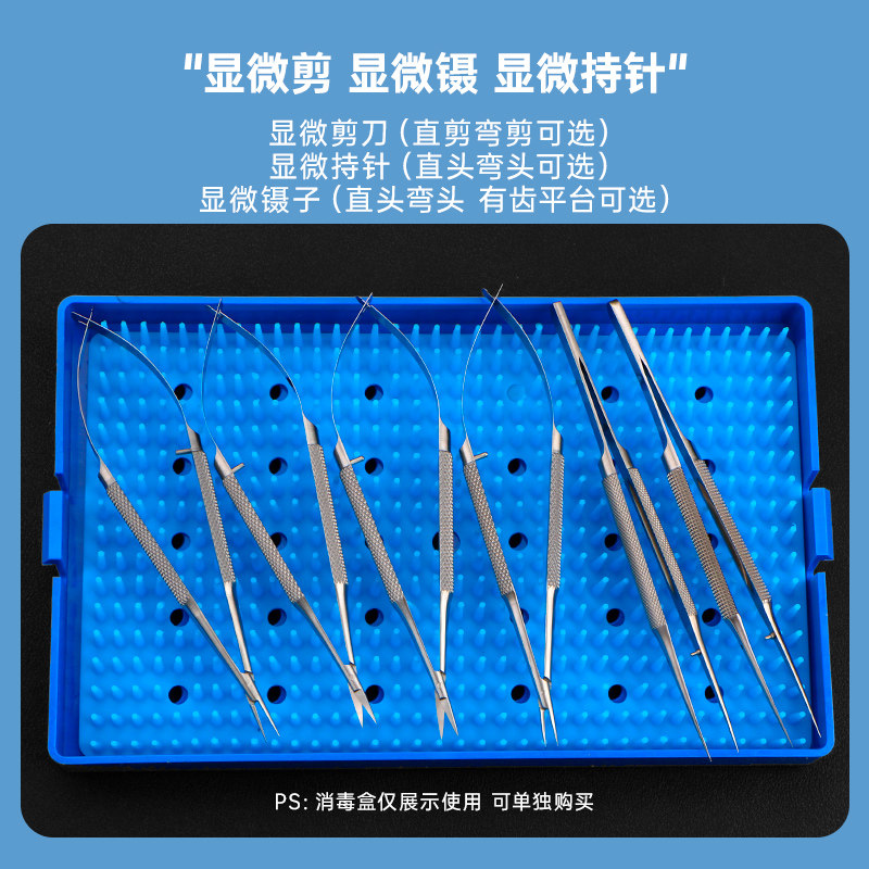 📚 眼科显微器械组合套包医用外科手术角膜剪刀持针器镊子硅胶消毒盒